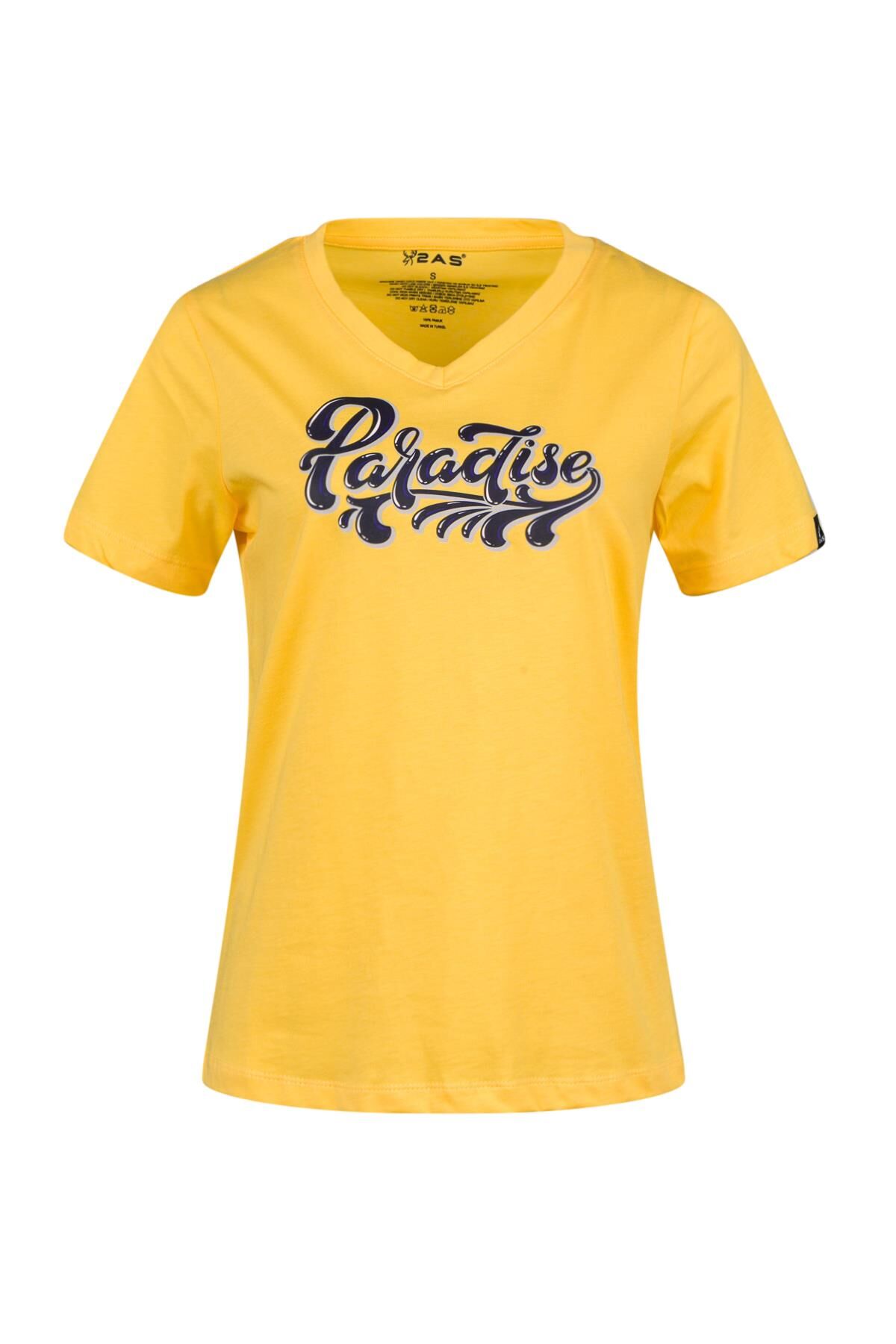 2AS Alone Baskılı V Yaka Kadın T-Shirt 406 2ASALONBAS40670M