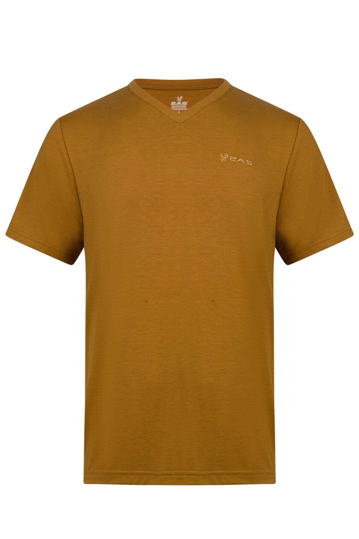 2AS Victor Erkek Viloft V Yaka T-Shirt Açık Kahverengi