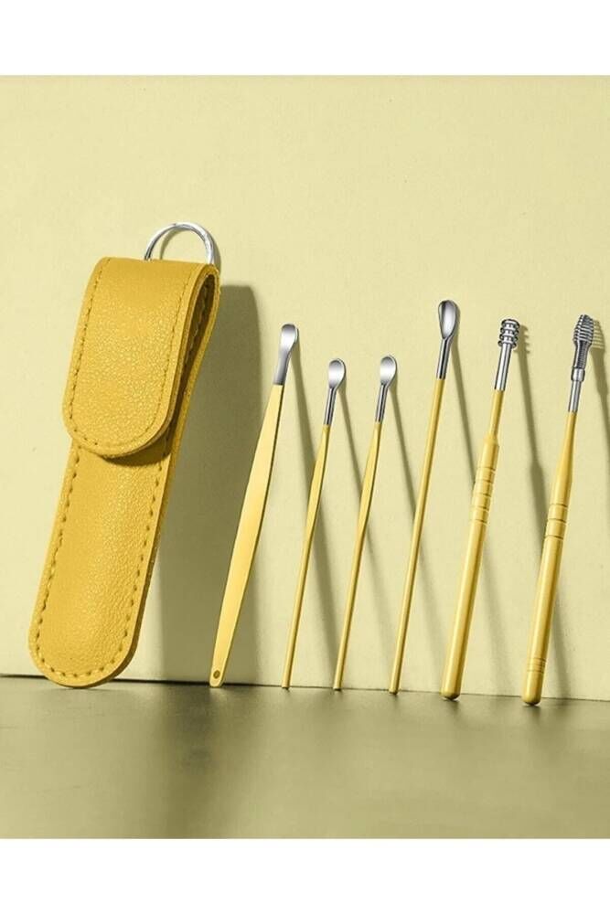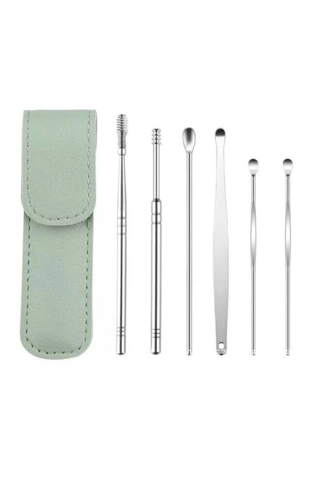 Deri Çantalı 6 Parça Çelik Kulak Temizleme Seti