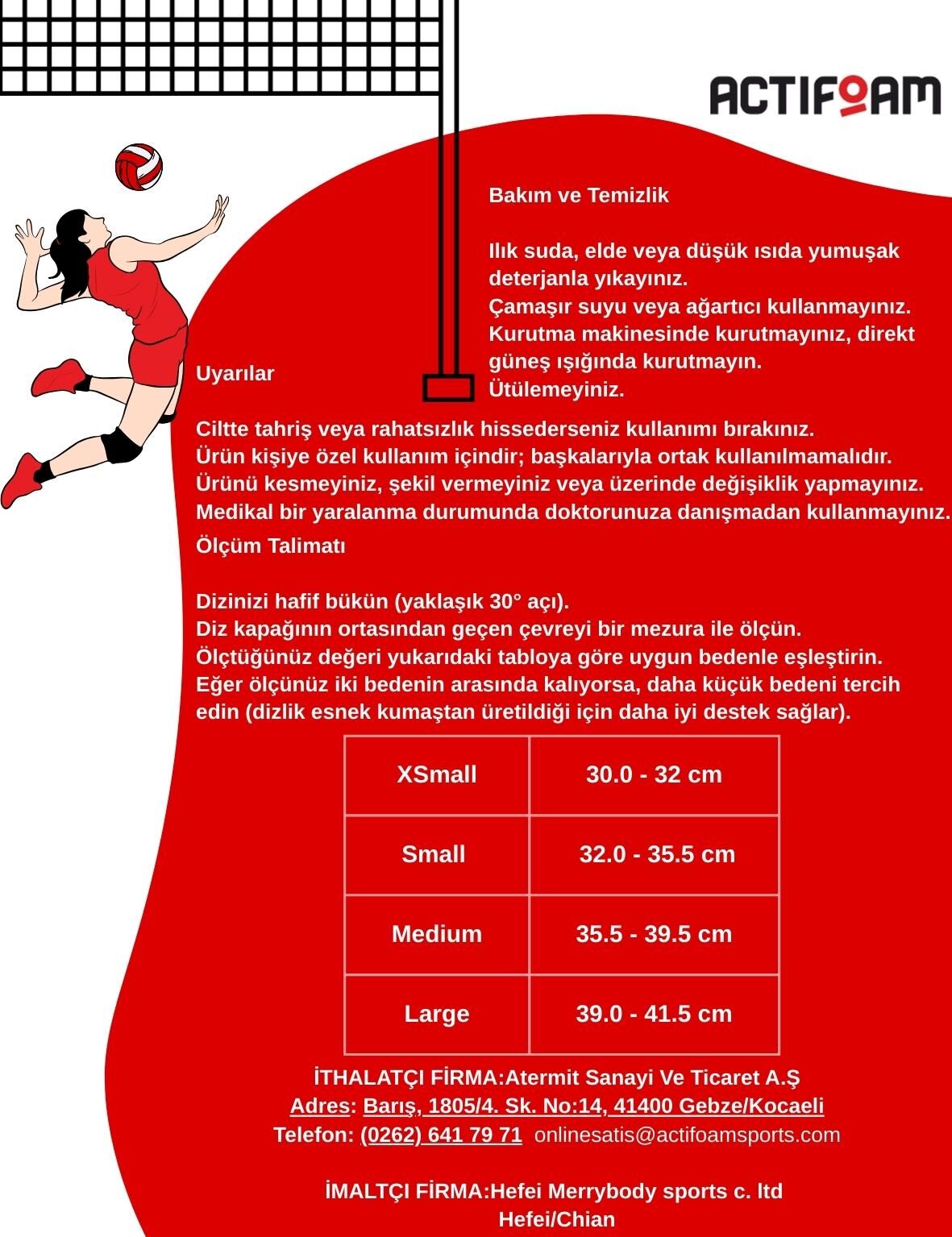 Actifoam voleybol dizliği, spor sırasında diz eklemini darbelerden korumak ve destek sağlamak amacıyla tasarlanmıştır. Profesyonel ve amatör sporcular için uygundur.
