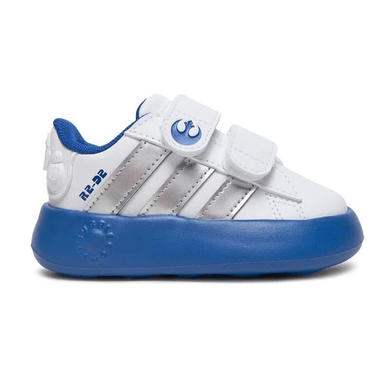 Adidas Droids Grand Court CF I IH1139, klasik sneaker stilini çocuklara özel eğlenceli detaylarla buluşturuyor. Star Wars temalı grafiklerle süslenen bu model, minik ayaklara gün boyu konfor sunarken aynı zamanda dikkat çekici bir görünüm kazandırıyor. Cırt cırtlı yapısı sayesinde kolayca giyilip çıkarılabilir, sağlam yapısıyla günlük kullanıma uygundur.
