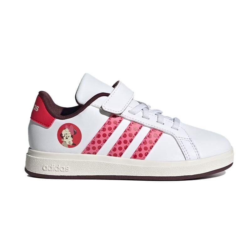 Eğlenceli bir dokunuşa sahip klasik bir görünüm. Bu çocuk ayakkabıları, adidas Grand Court tenis ayakkabılarının ikonik tasarımını alıp puantiyeli 3-Stripes ve eğlenceyi seven Disney'in Minnie Mouse grafikleriyle güncelliyor. Orta taban ve dış tabandaki yumuşak ve destekleyici EVA, çocuklar oynarken ve keşfederken rahat olmalarını sağlar. Elastik bağcıklar ve cırt cırtlı kayışlar, çocuğunuz parkta bir oyun için kapıdan dışarı koşarken veya evde en sevdiği Disney filmini izlemek için ayakkabılarını çıkarırken kolayca giyip çıkarmanızı sağlar.