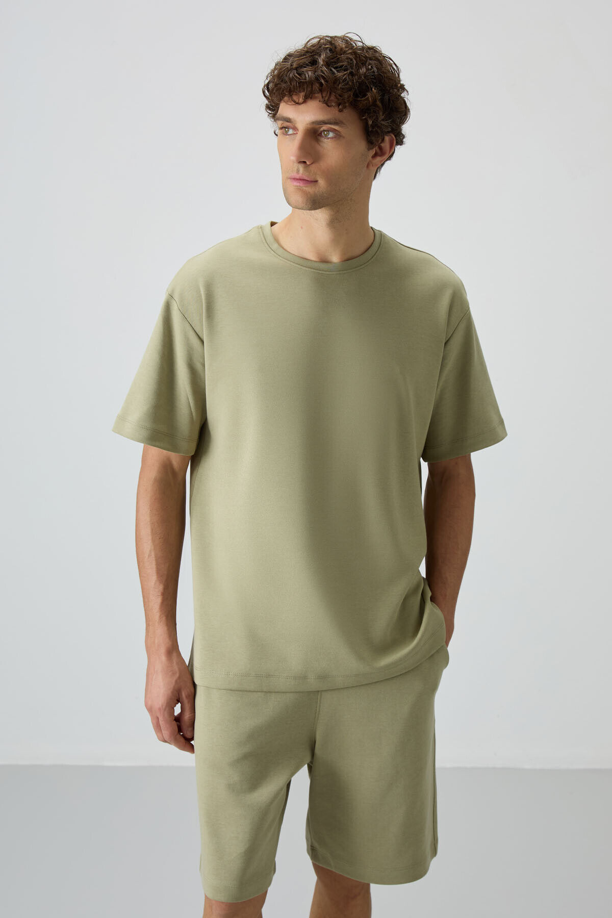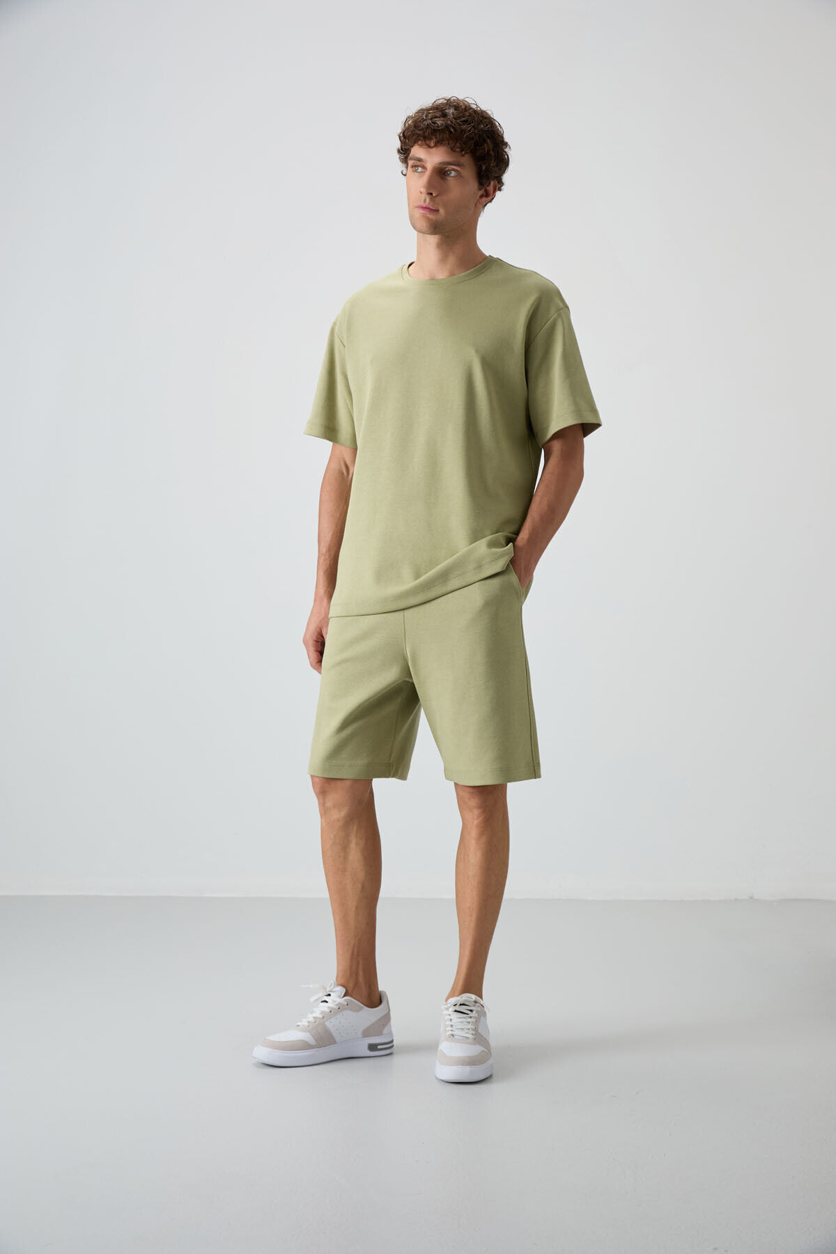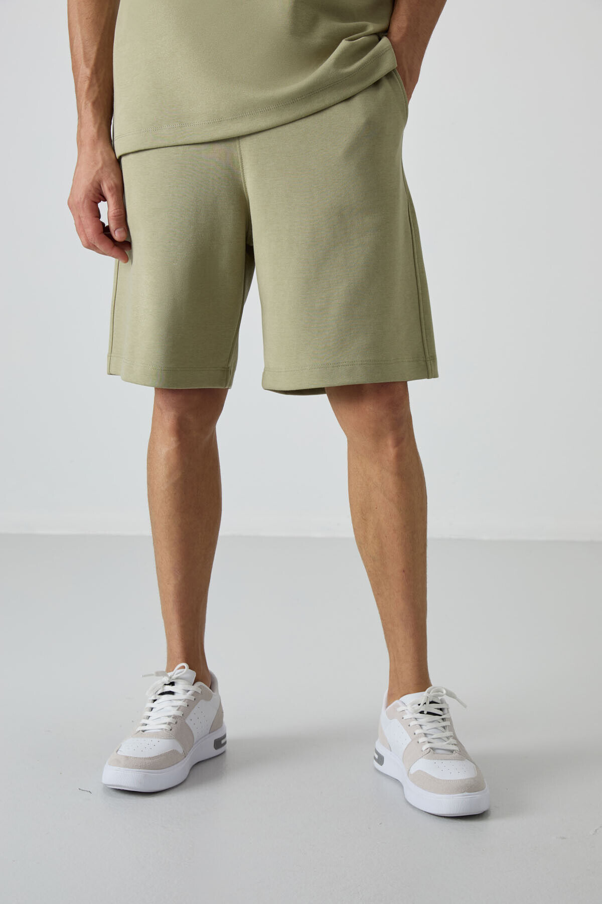 Air Jones Açık Çağla Pamuklu Kalın Yumuşak Dokulu Oversize Fit Basic Erkek Şort Takım - 85249