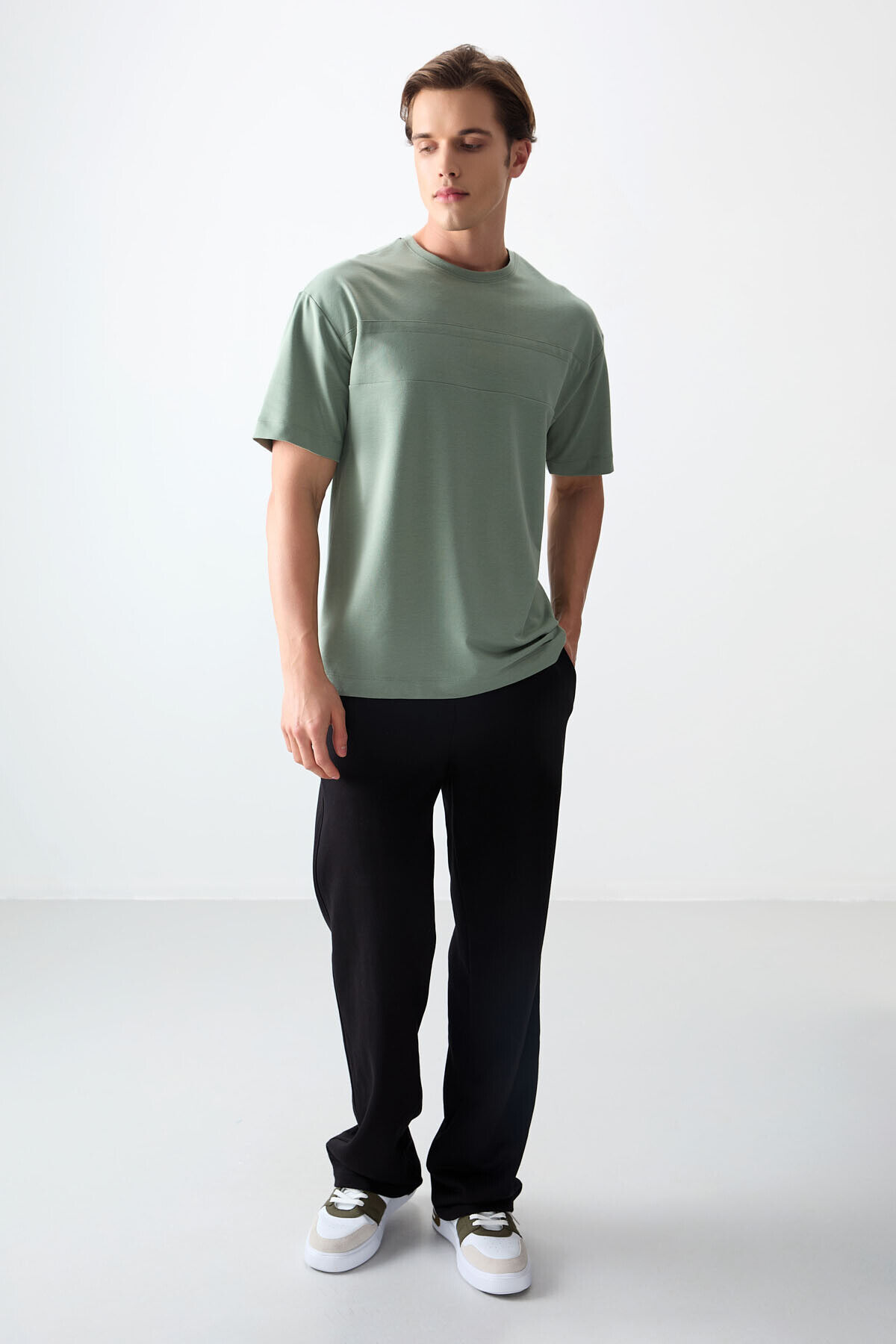 Air Jones Açık Yeşil Pamuklu Kalın Yumuşak Dokulu Oversize Fit Basic Erkek T-Shirt - 88378