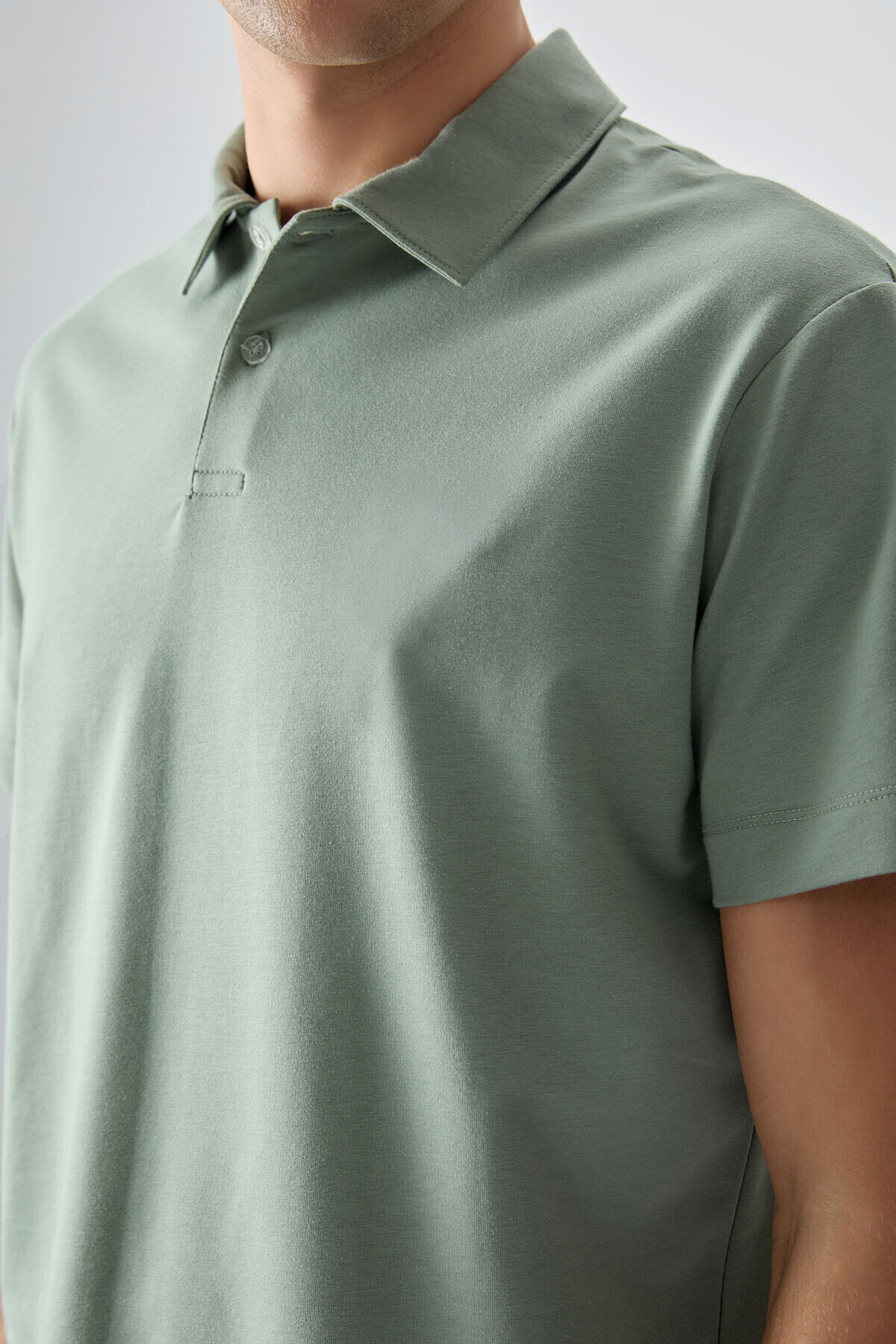 Air Jones Açık Yeşil Pamuklu Kalın Yumuşak Dokulu Polo Yaka Oversize Fit Basic Erkek T-Shirt - 88381