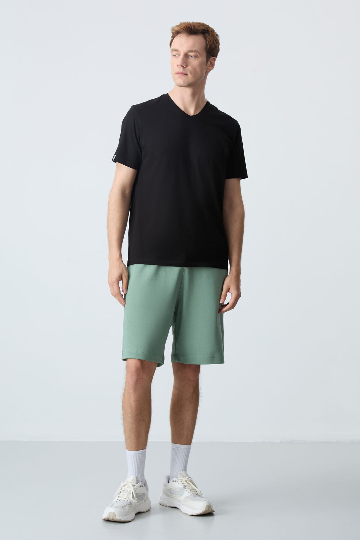 Air Jones Açık Yeşil Pamuklu Kalın Yumuşak Dokulu Standart Fit Basic Erkek Şort - 81275