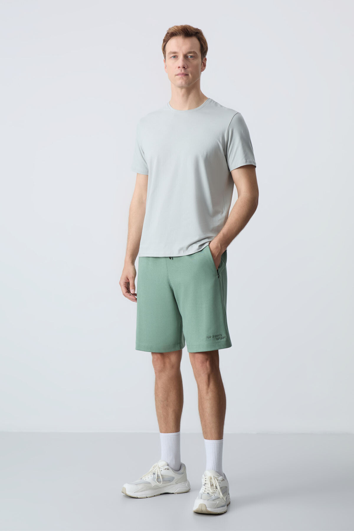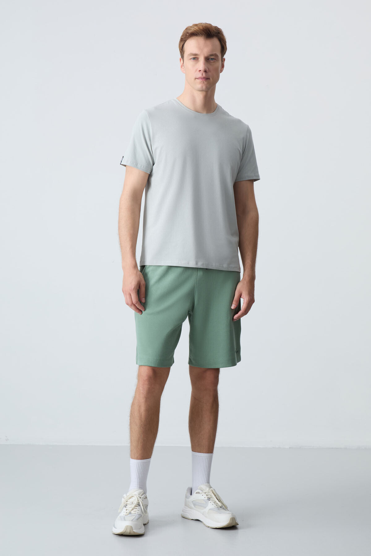 Açık Yeşil Pamuklu Kalın Yumuşak Dokulu Standart Fit Basic Erkek Şort - 81276