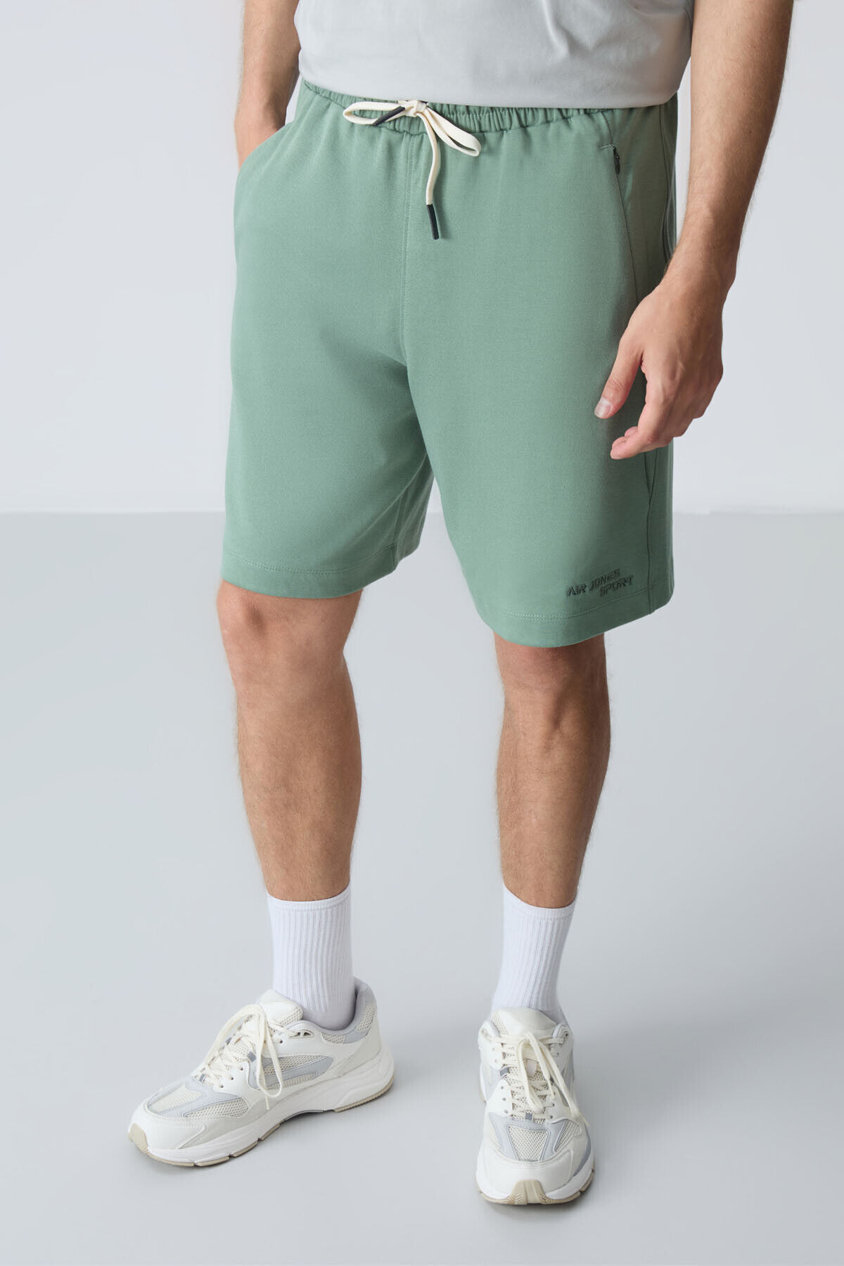 Air Jones Açık Yeşil Pamuklu Kalın Yumuşak Dokulu Standart Fit Basic Erkek Şort - 81276