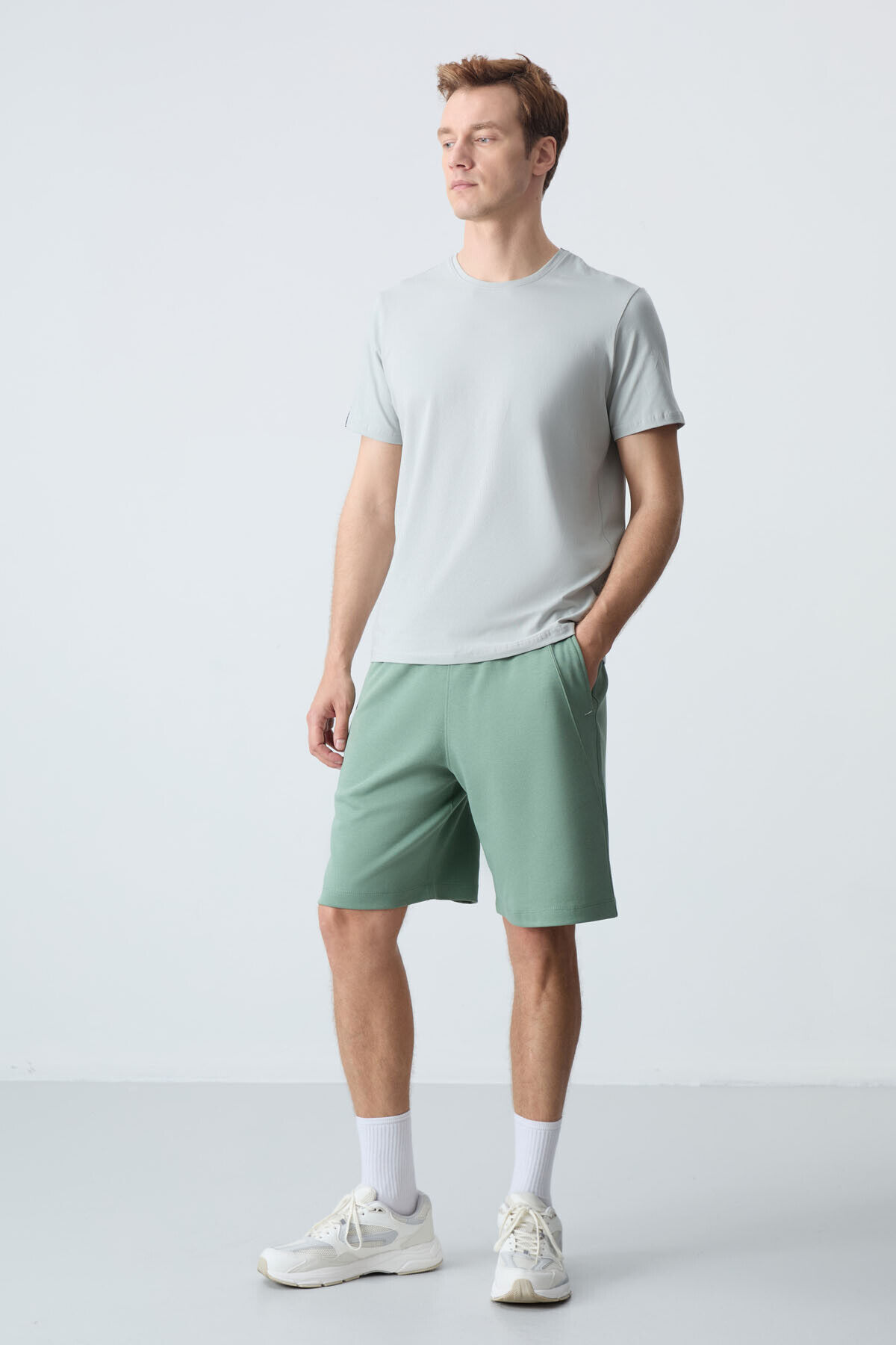 Air Jones Açık Yeşil Pamuklu Kalın Yumuşak Dokulu Standart Fit Basic Erkek Şort - 81278