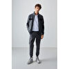 Antrasit Melanj Yüzeyi Dokulu Standart Fit Nakışlı Erkek Eşofman Takım - 85248