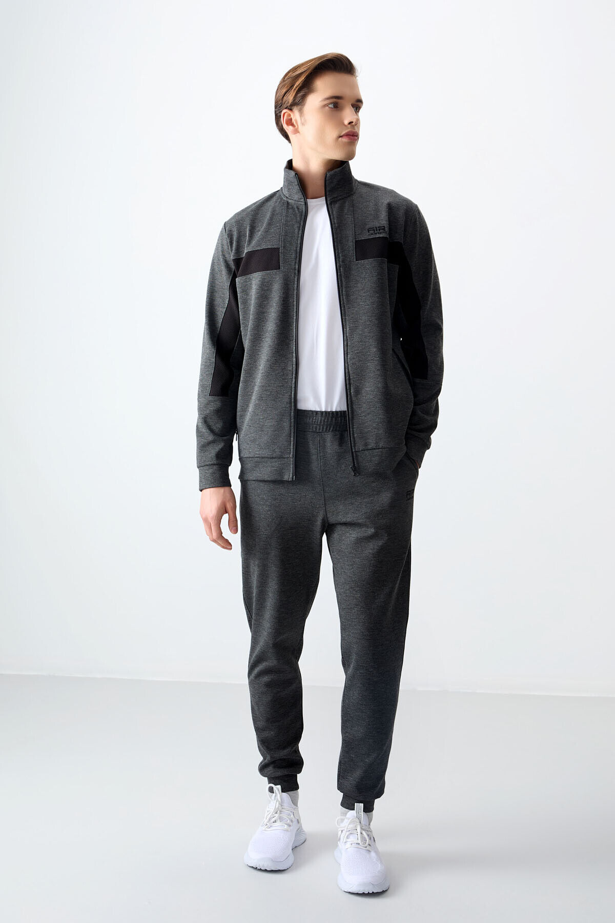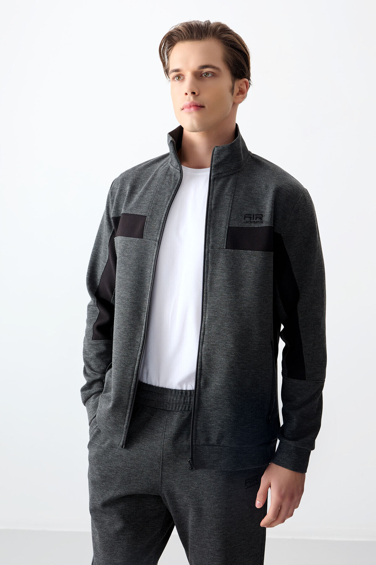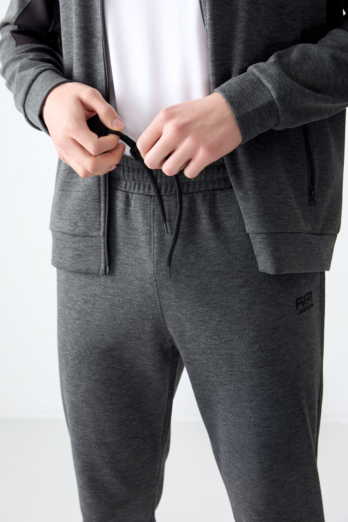 Air Jones Antrasit Melanj Yüzeyi Dokulu Standart Fit Nakışlı Erkek Eşofman Takım - 85248