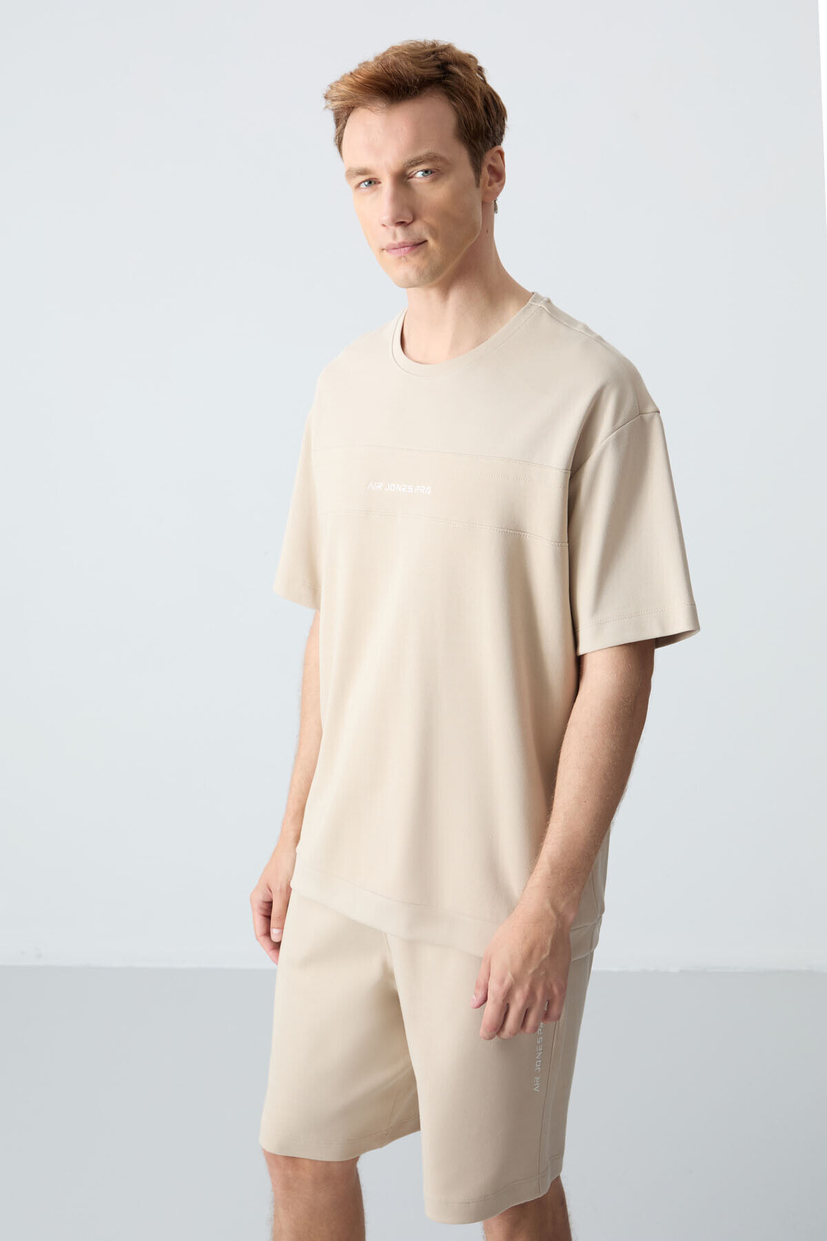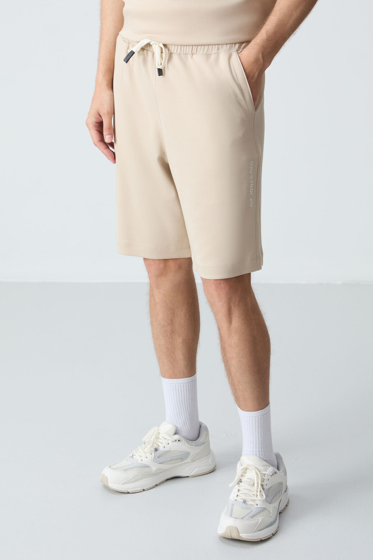 Bej Pamuklu Kalın Yumuşak Dokulu Comfort Fit Basic Erkek Şort Takım - 85257