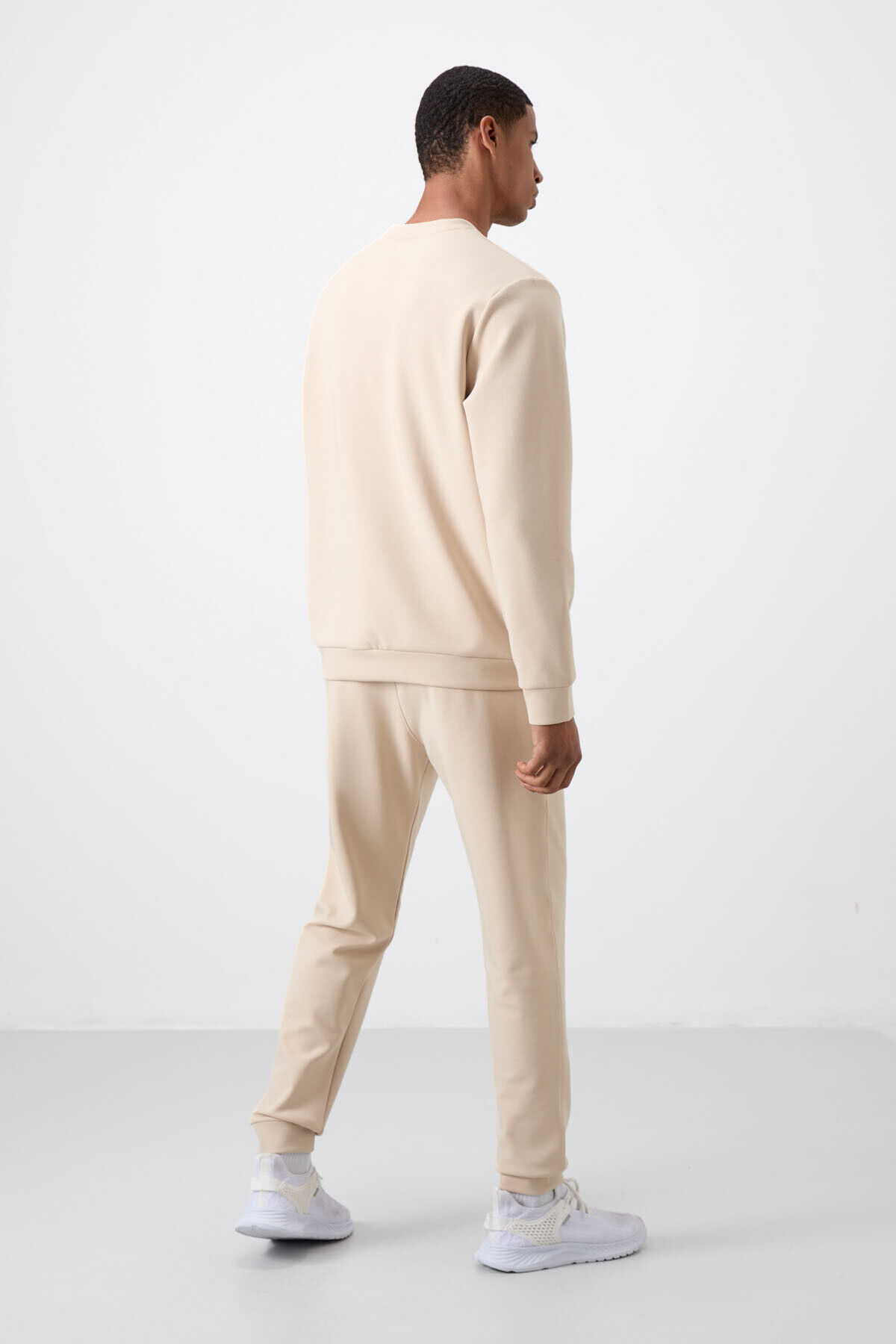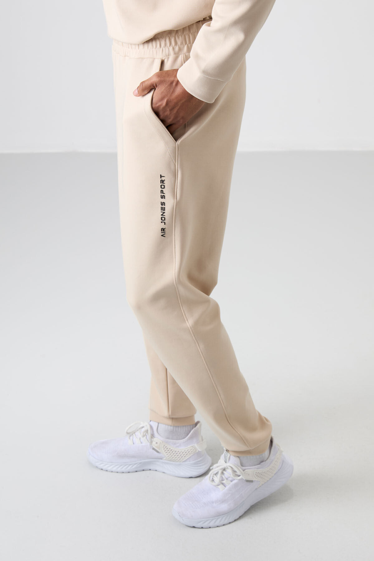 Air Jones Bej Pamuklu Kalın Yumuşak Dokulu Comfort Fit Baskılı Erkek Eşofman Takım - 85253