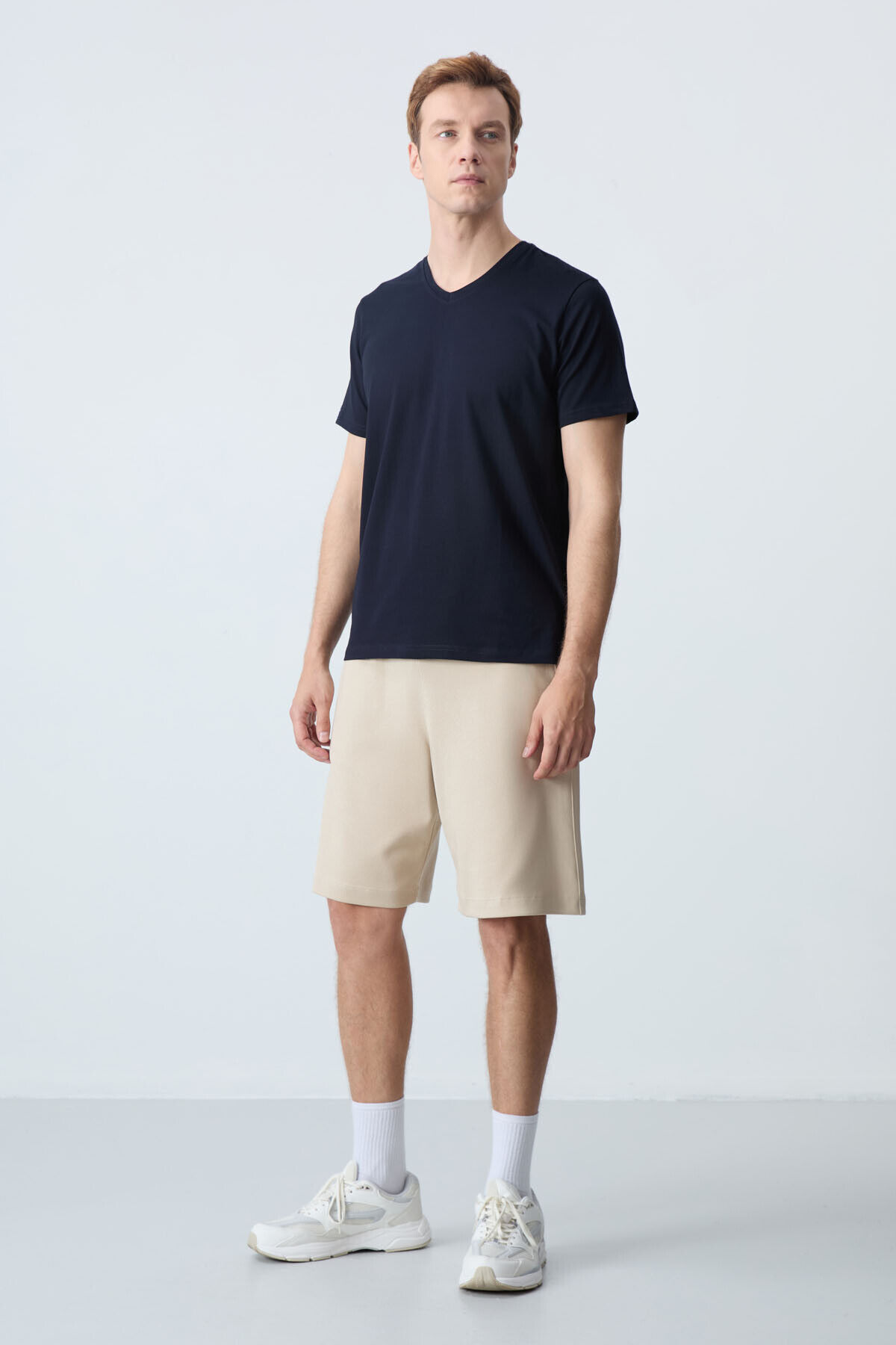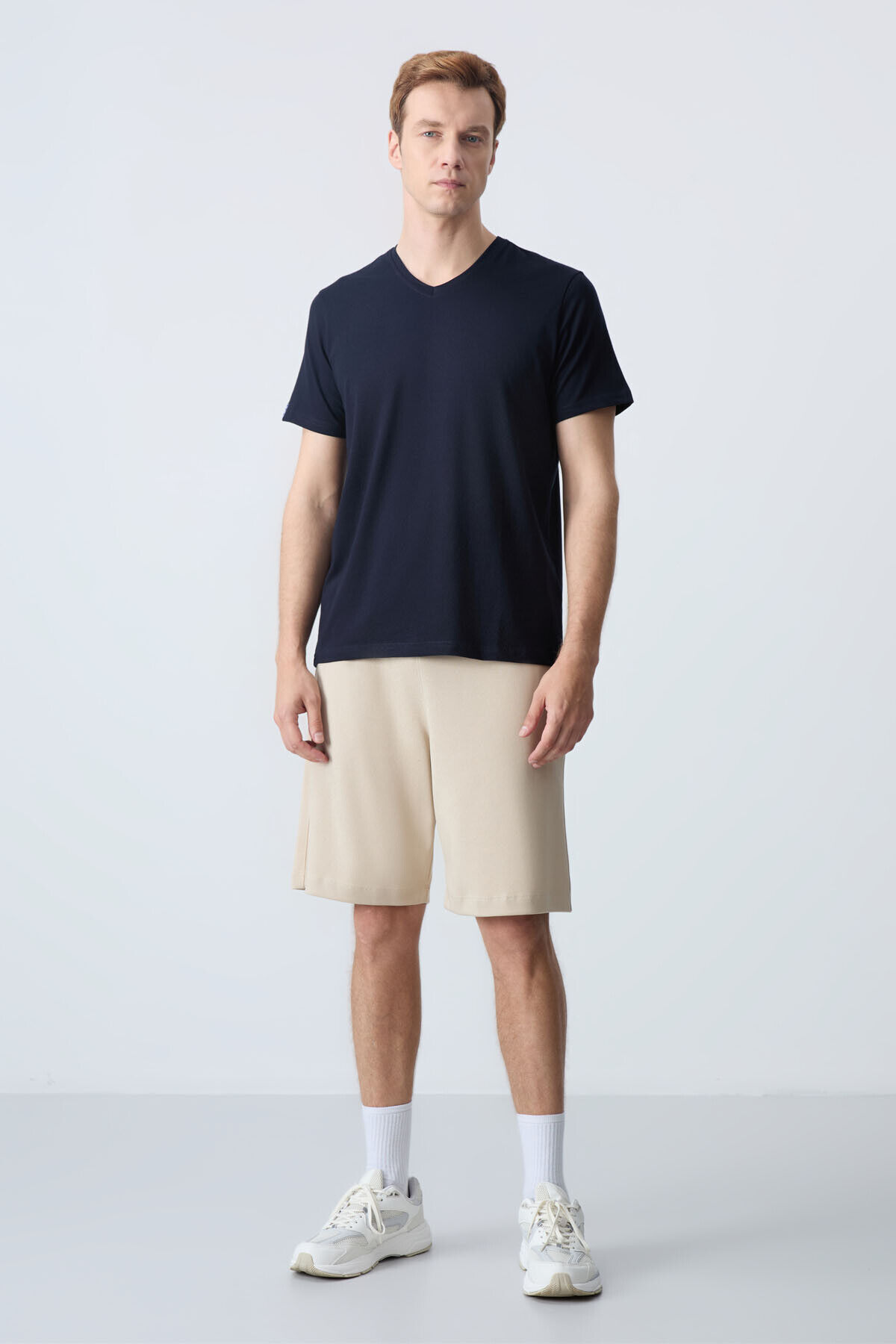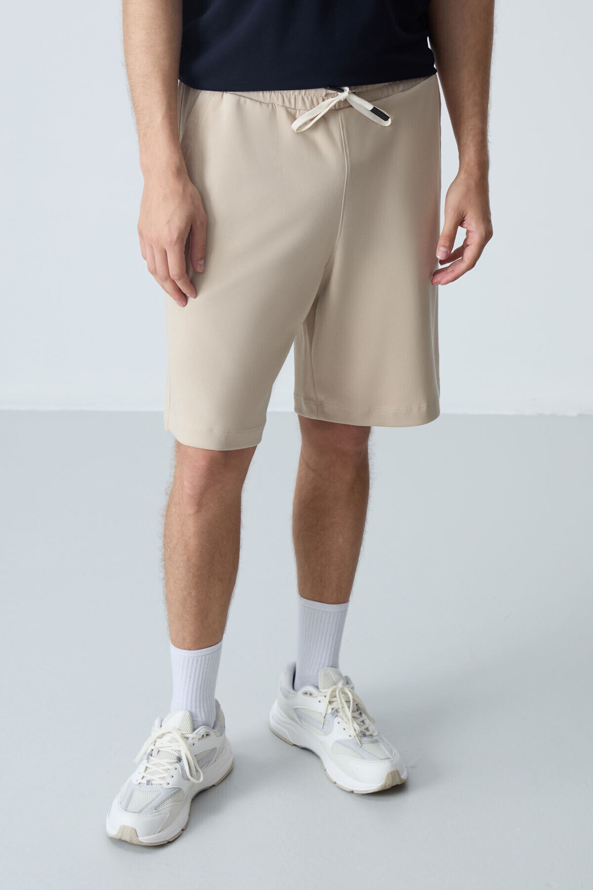 Air Jones Bej Pamuklu Kalın Yumuşak Dokulu Standart Fit Basic Erkek Şort - 81275