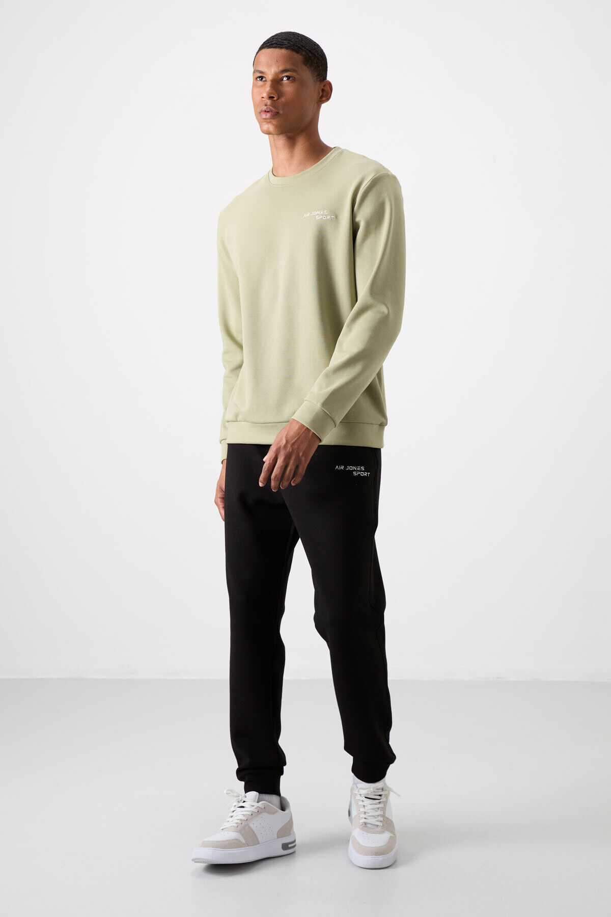 Air Jones Çağla - Siyah Pamuklu Kalın Yumuşak Dokulu Comfort Fit Nakışlı Erkek Eşofman Takım - 85254