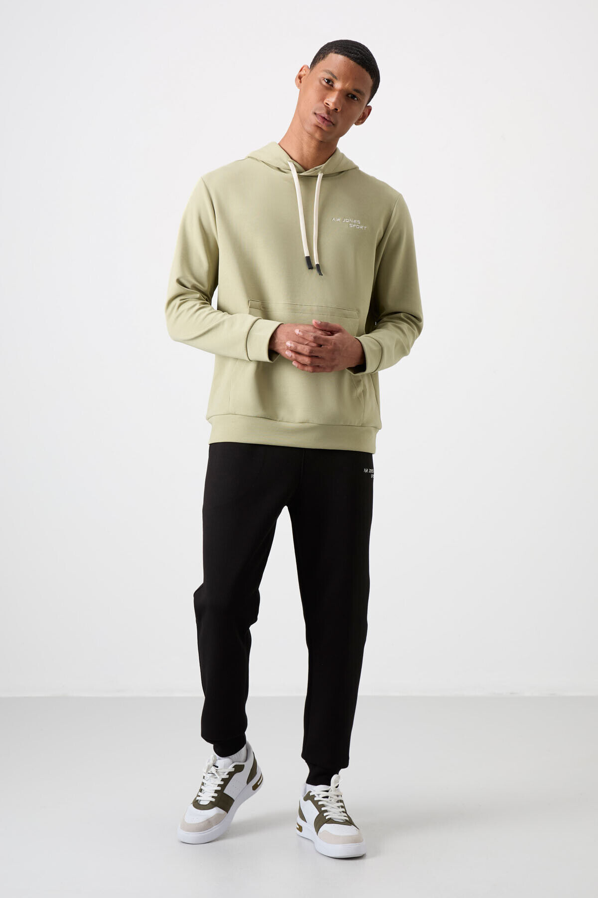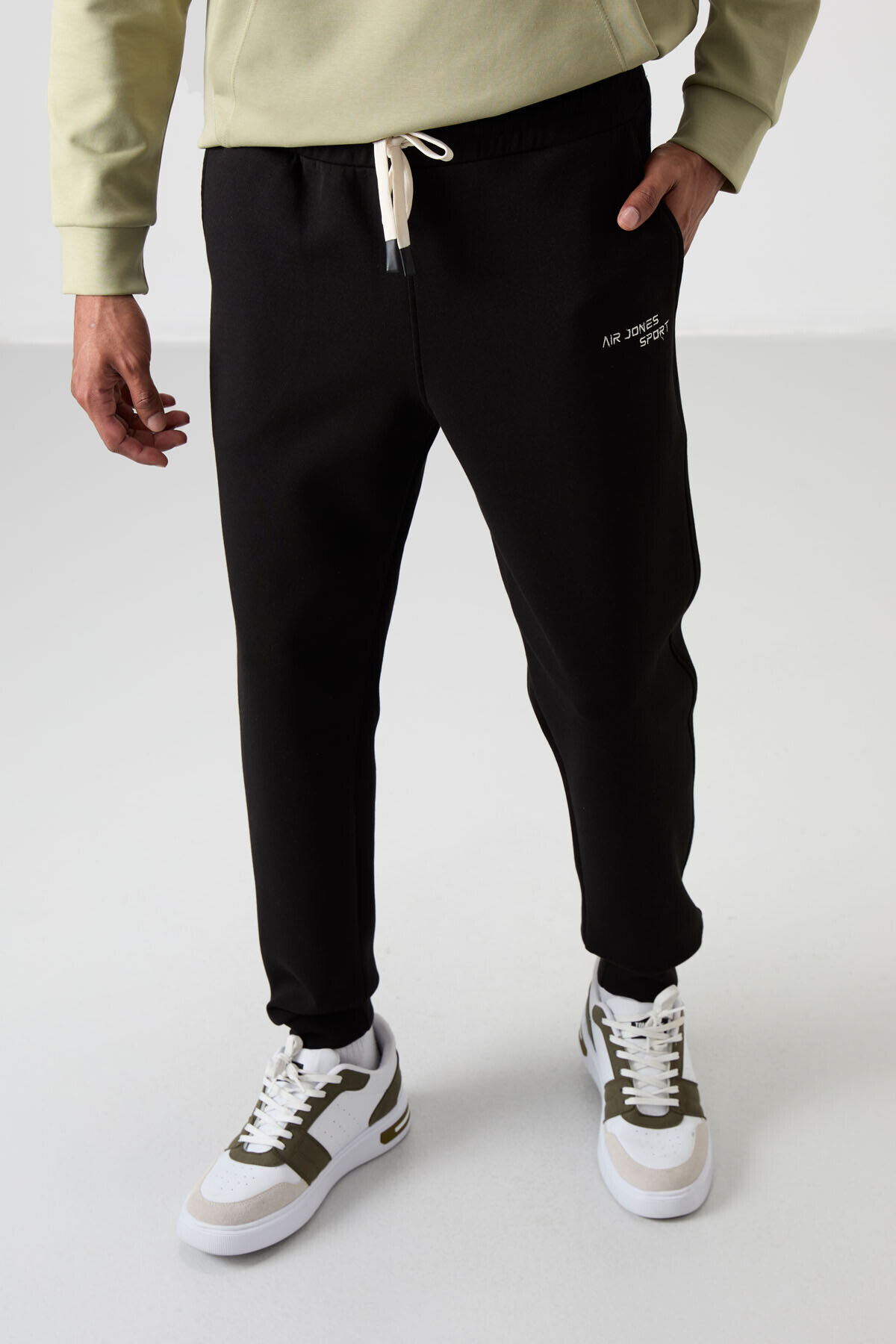 Çağla - Siyah Pamuklu Kalın Yumuşak Dokulu Comfort Fit Nakışlı Erkek Eşofman Takım - 85255