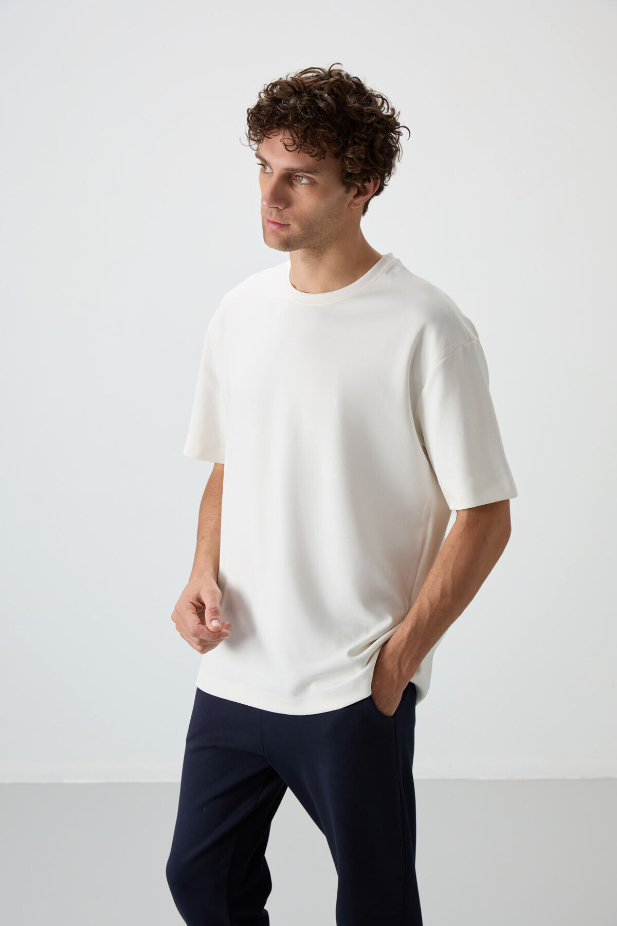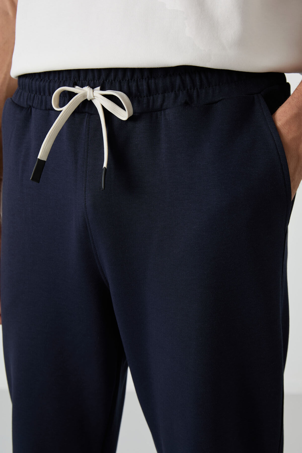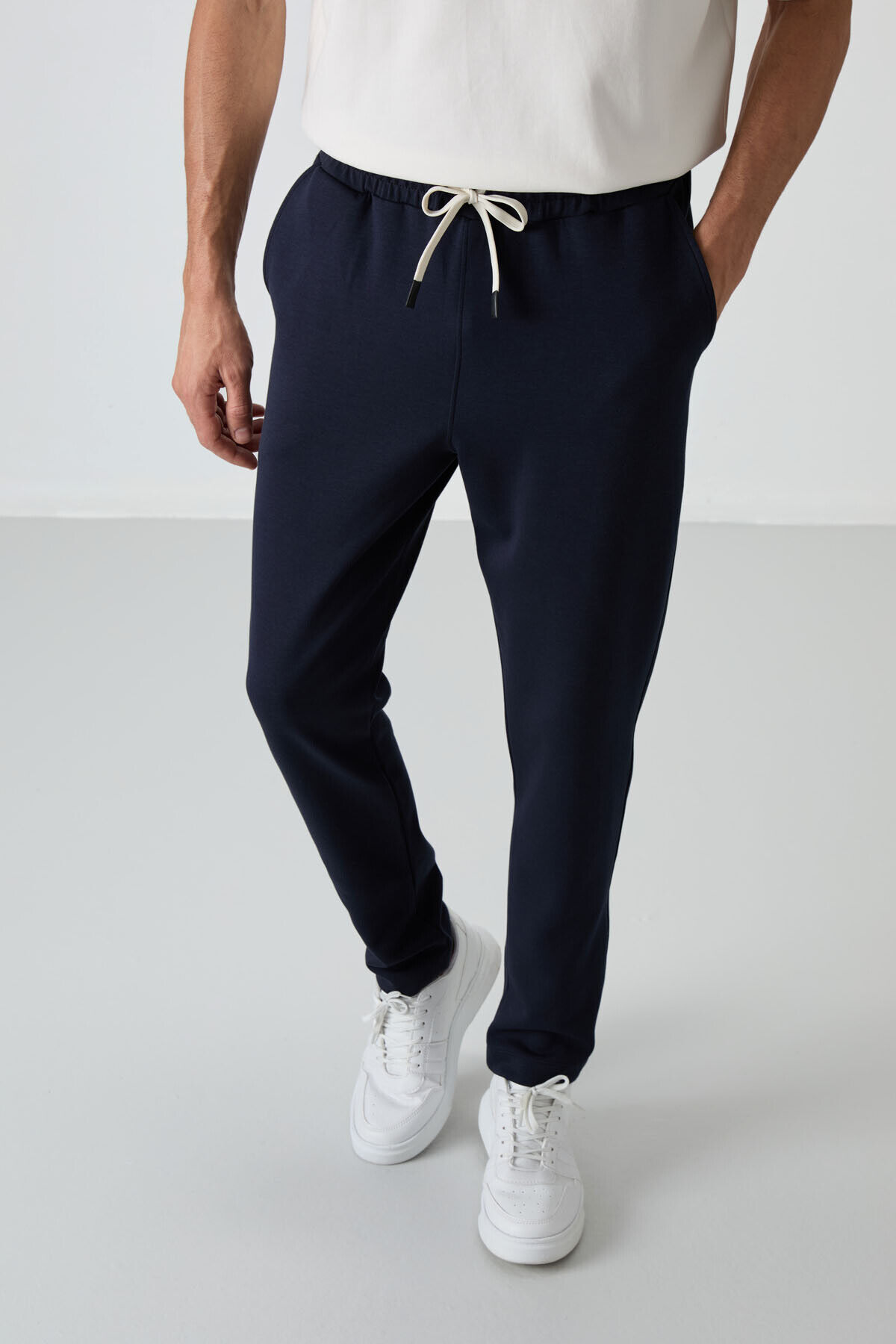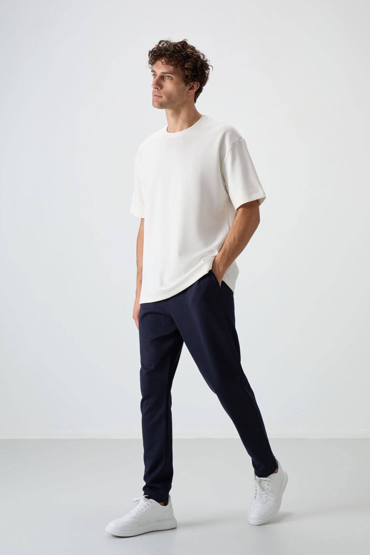 Air Jones Ekru - Lacivert Pamuklu Kalın Yumuşak Dokulu Oversize Fit Basic Erkek Eşofman Takım - 85251