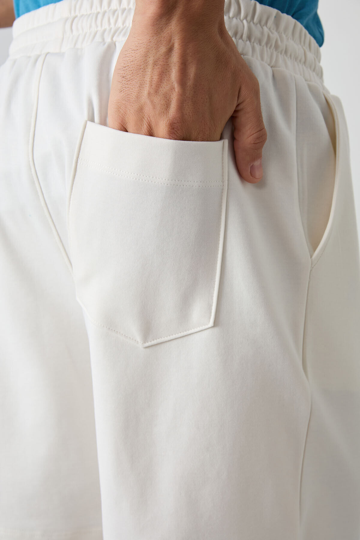Ekru Pamuklu Kalın Yumuşak Dokulu Comfort Fit Basic Erkek Şort - 81274