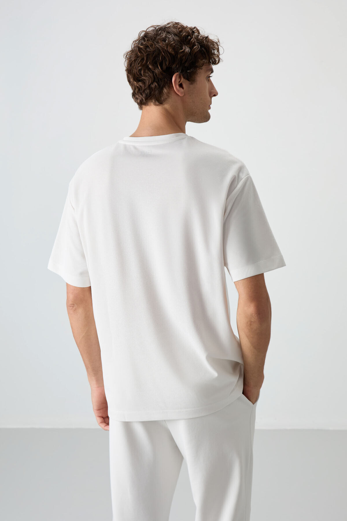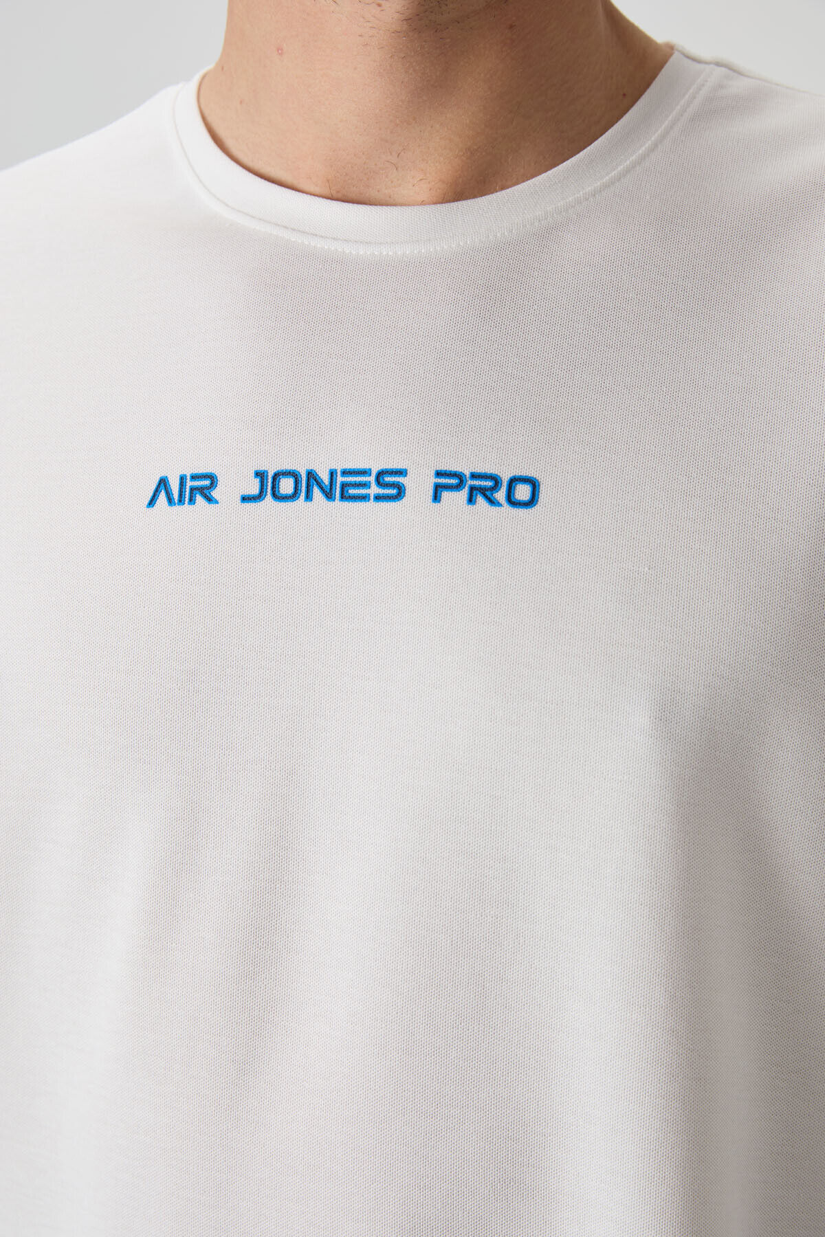 Air Jones Ekru Pamuklu Kalın Yüzeyi Dokulu Oversize Fit Baskılı Erkek T-Shirt - 88364