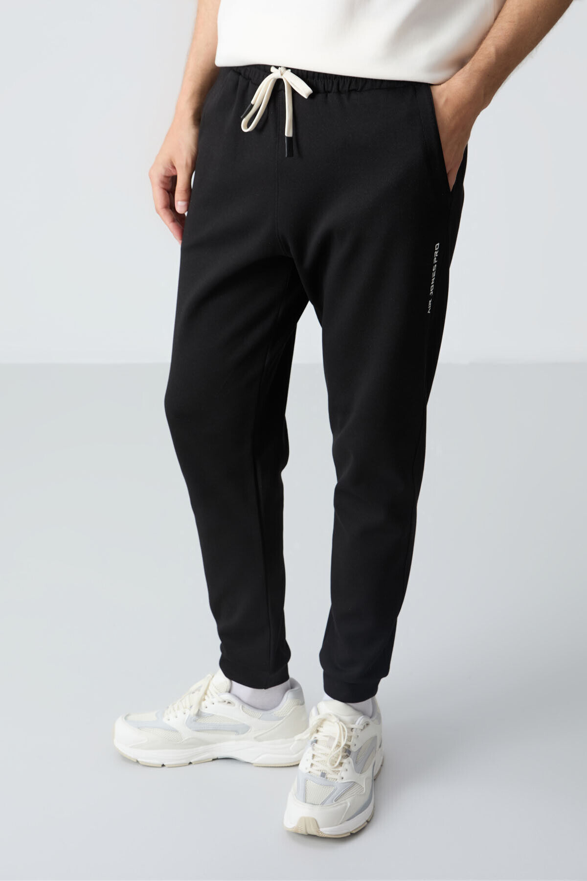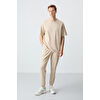 Ekru Siyah Pamuklu Kalın Yumuşak Dokulu Oversize Fit Basic Erkek Eşofman Takım - 85261