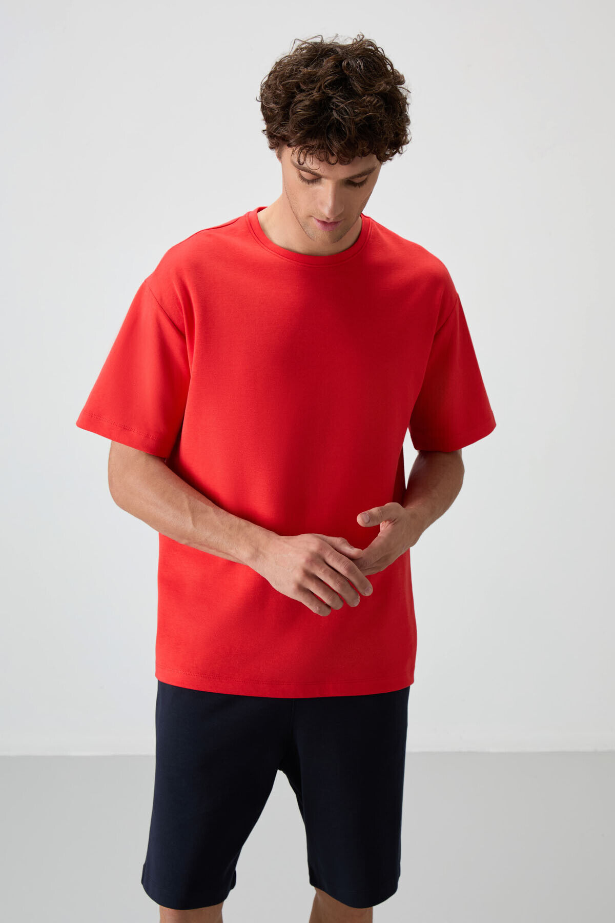 Fiesta - Lacivert Pamuklu Kalın Yumuşak Dokulu Oversize Fit Basic Erkek Şort Takım - 85249