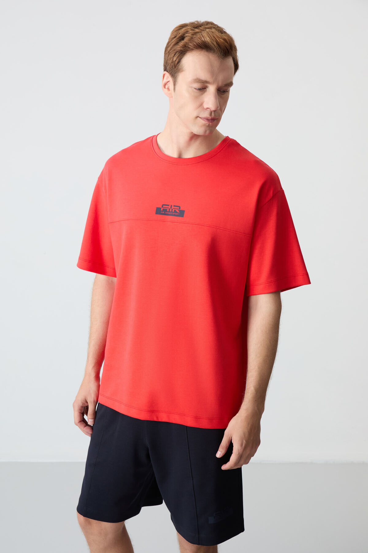 Fiesta - Lacivert Pamuklu Kalın Yumuşak Dokulu Oversize Fit Basic Erkek Şort Takım - 85259