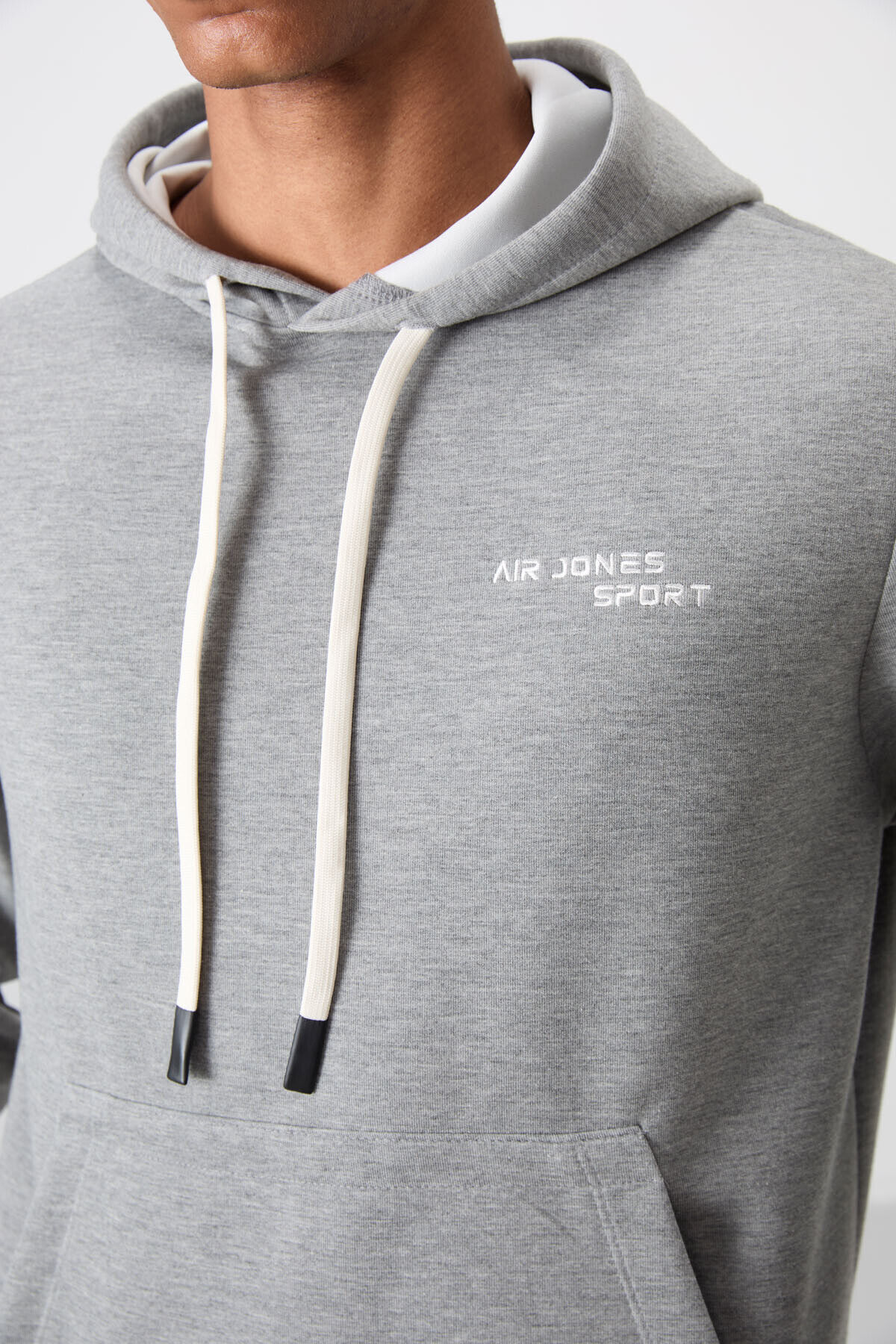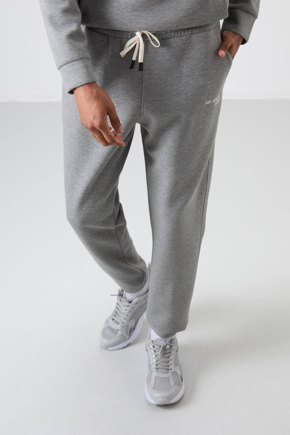 Air Jones Gri Melanj Pamuklu Kalın Yumuşak Dokulu Comfort Fit Nakışlı Erkek Eşofman Takım - 85255