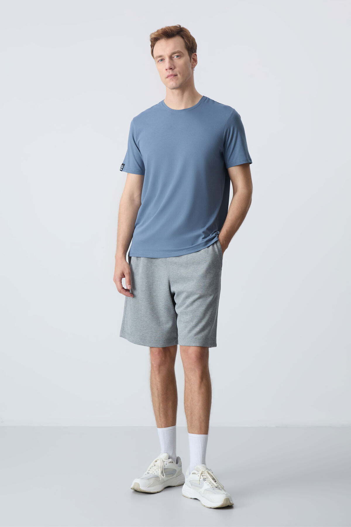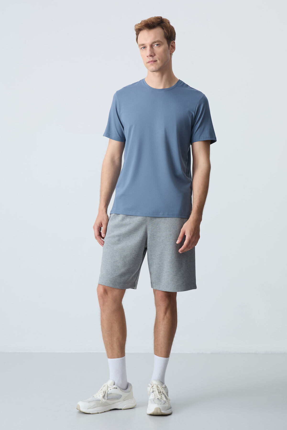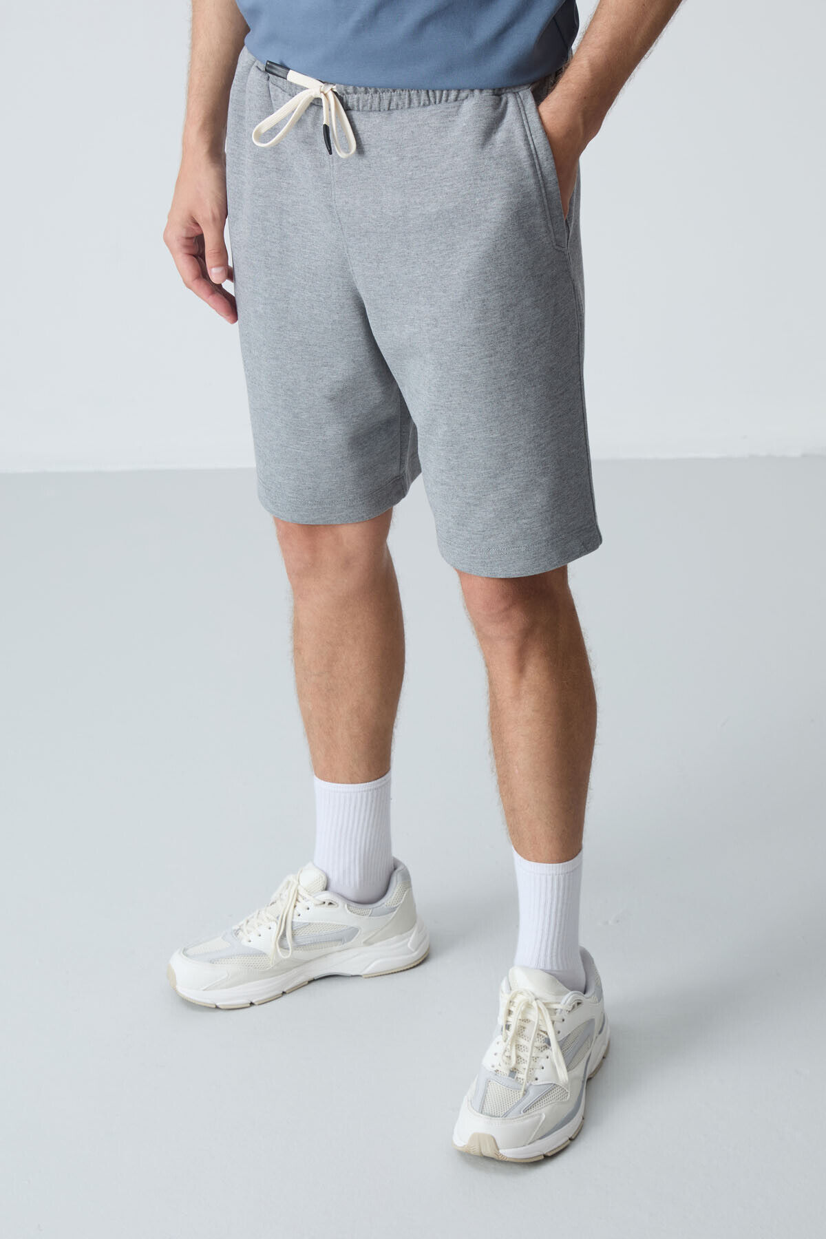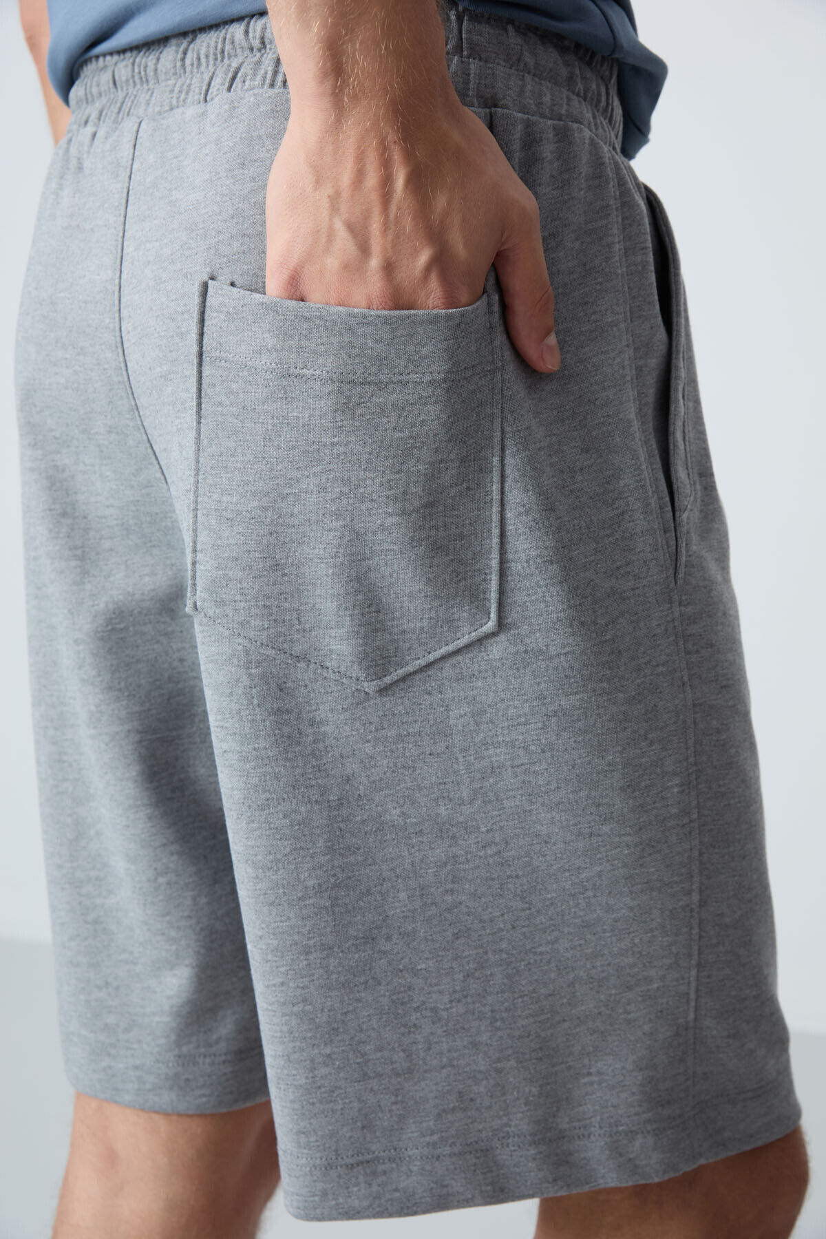Gri Melanj Pamuklu Kalın Yumuşak Dokulu Standart Fit Basic Erkek Şort - 81275