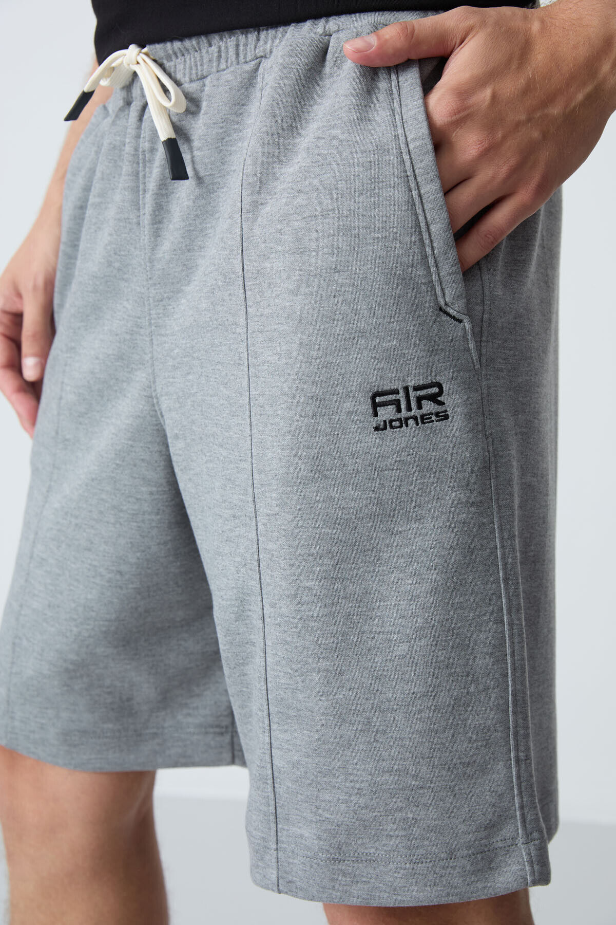 Gri Melanj Pamuklu Kalın Yumuşak Dokulu Standart Fit Basic Erkek Şort - 81277