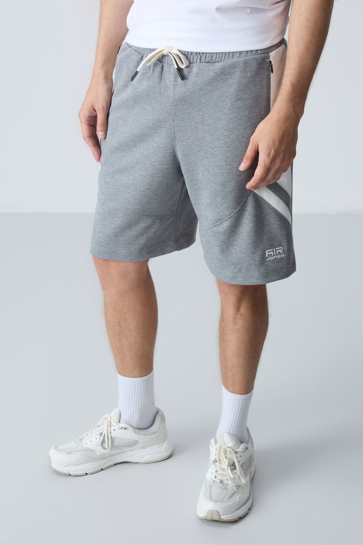 Air Jones Gri Melanj Pamuklu Kalın Yumuşak Dokulu Standart Fit Basic Erkek Şort - 81281