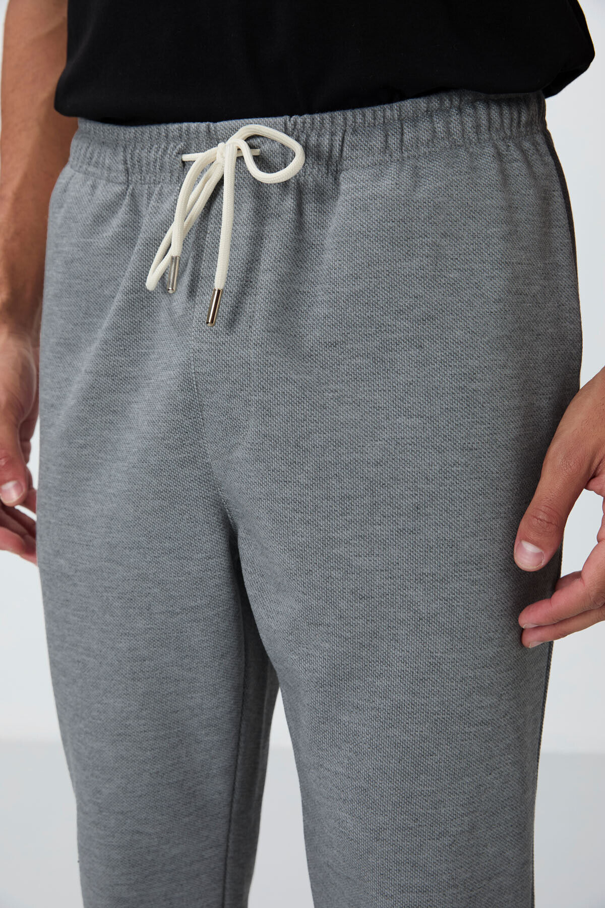 Air Jones Gri Melanj Yüzeyi Dokulu Standart Fit Erkek Eşofman Alt - 82154