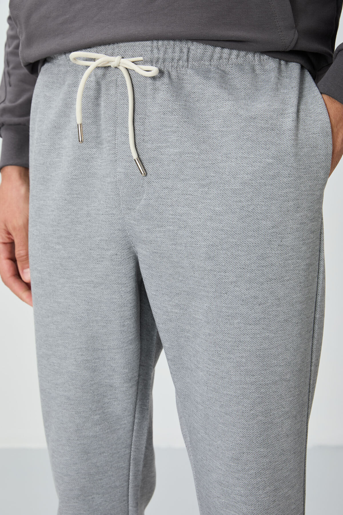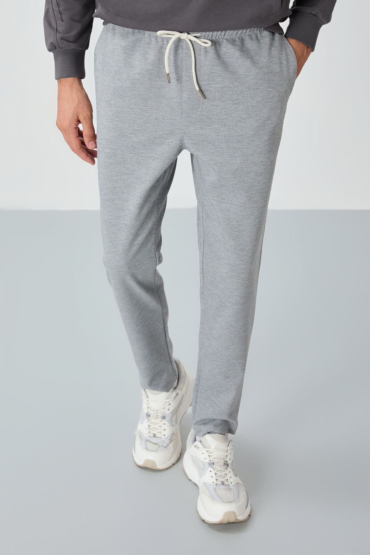 Air Jones Gri Melanj Yüzeyi Dokulu Standart Fit Erkek Eşofman Alt - 82155