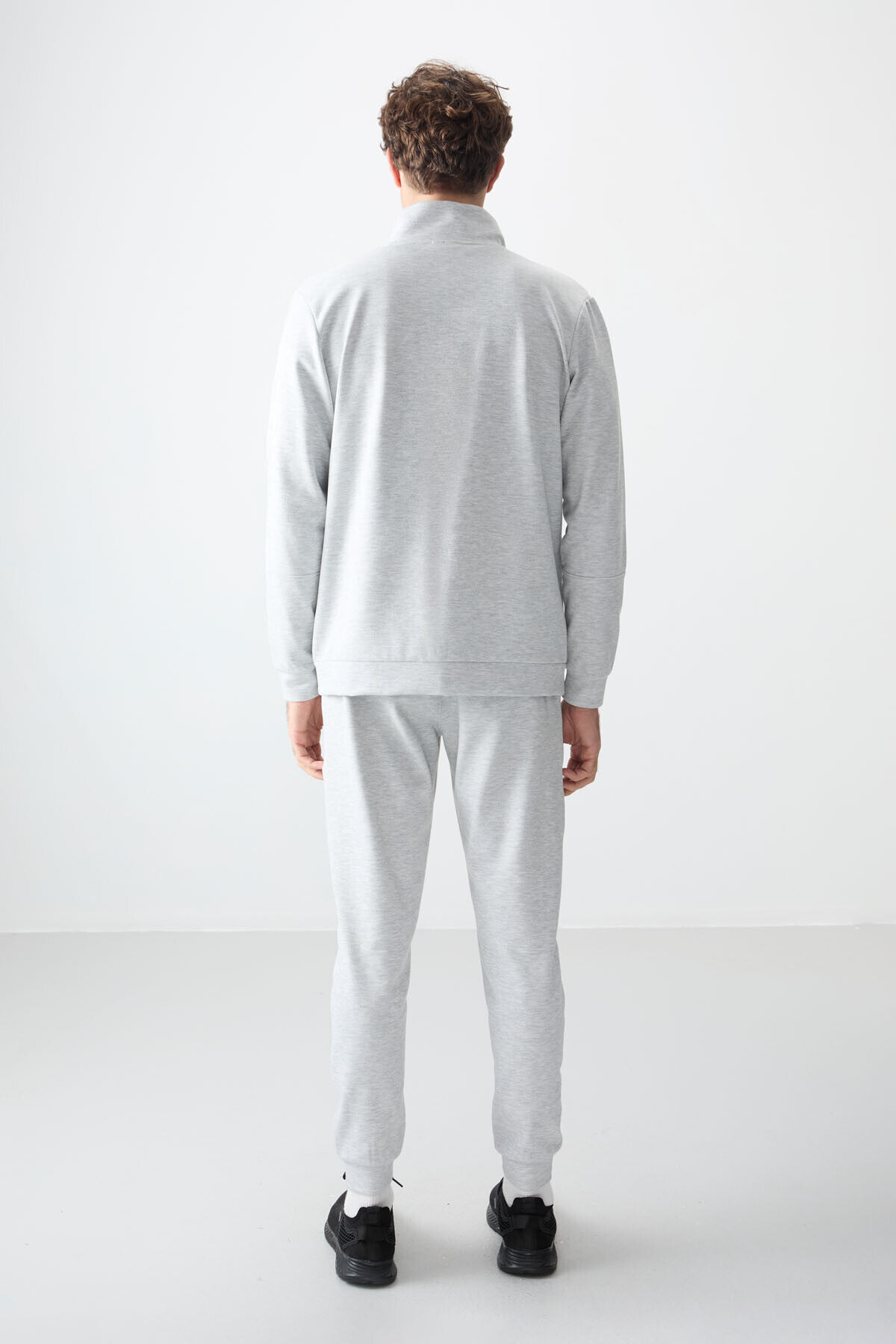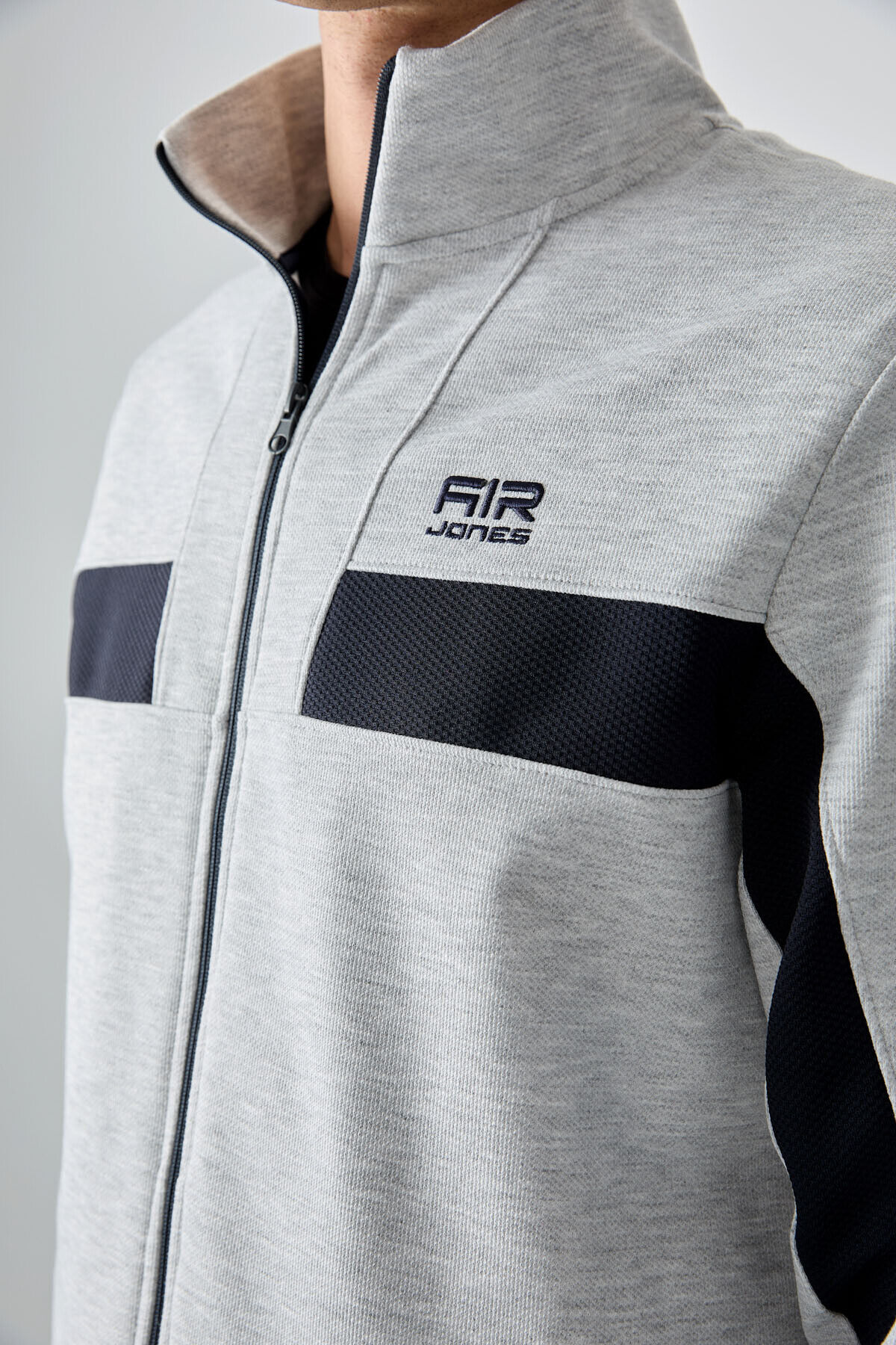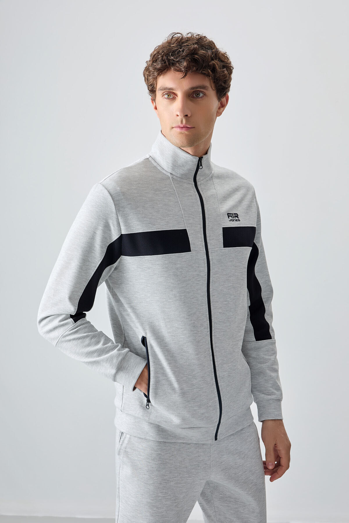 Air Jones Gri Yüzeyi Dokulu Standart Fit Nakışlı Erkek Eşofman Takım - 85248
