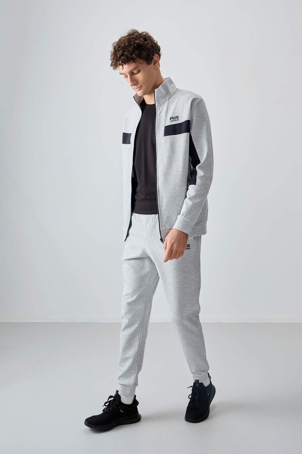 Gri Yüzeyi Dokulu Standart Fit Nakışlı Erkek Eşofman Takım - 85248