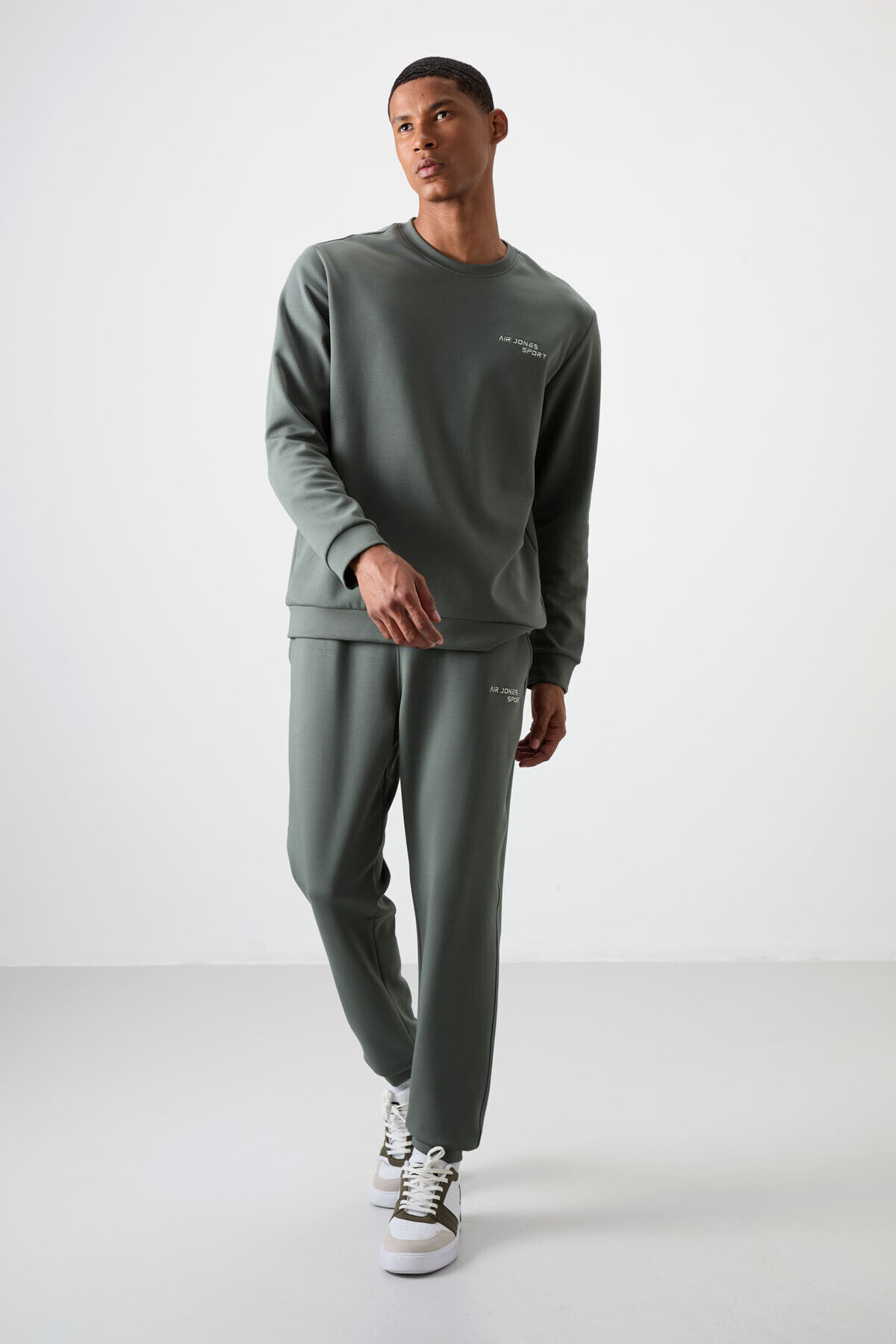 Air Jones Haki Pamuklu Kalın Yumuşak Dokulu Comfort Fit Nakışlı Erkek Eşofman Takım - 85254