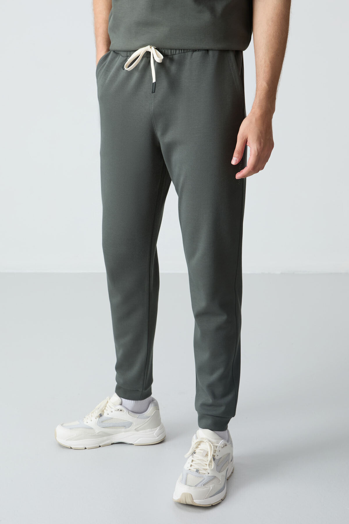 Haki Pamuklu Kalın Yumuşak Dokulu Oversize Fit Basic Erkek Eşofman Takım - 85261