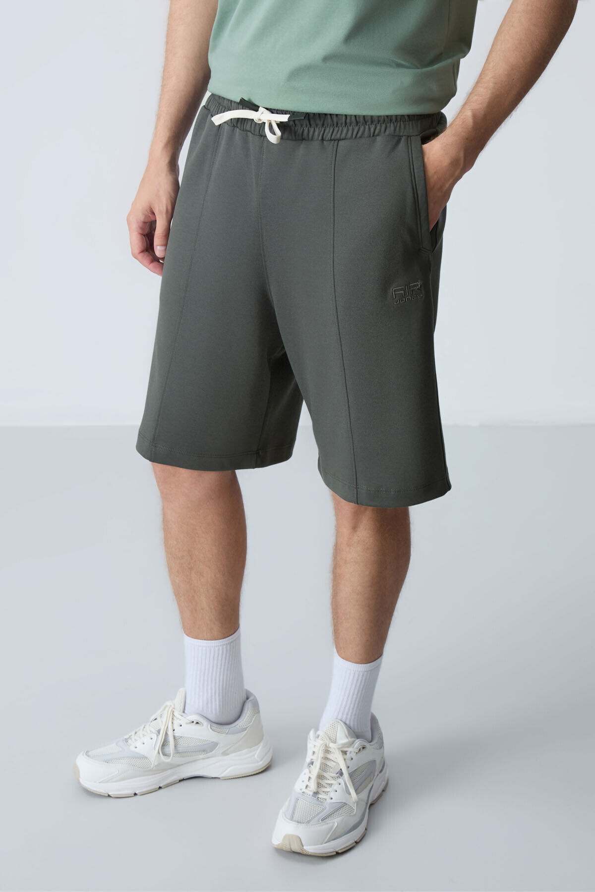 Air Jones Haki Pamuklu Kalın Yumuşak Dokulu Standart Fit Basic Erkek Şort - 81277
