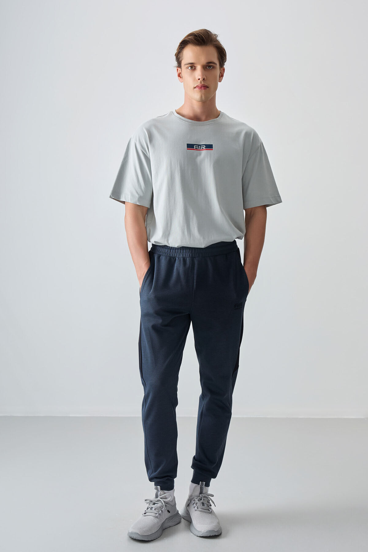 İndigo Yüzeyi Dokulu Standart Fit Nakışlı Erkek Eşofman Alt - 82126