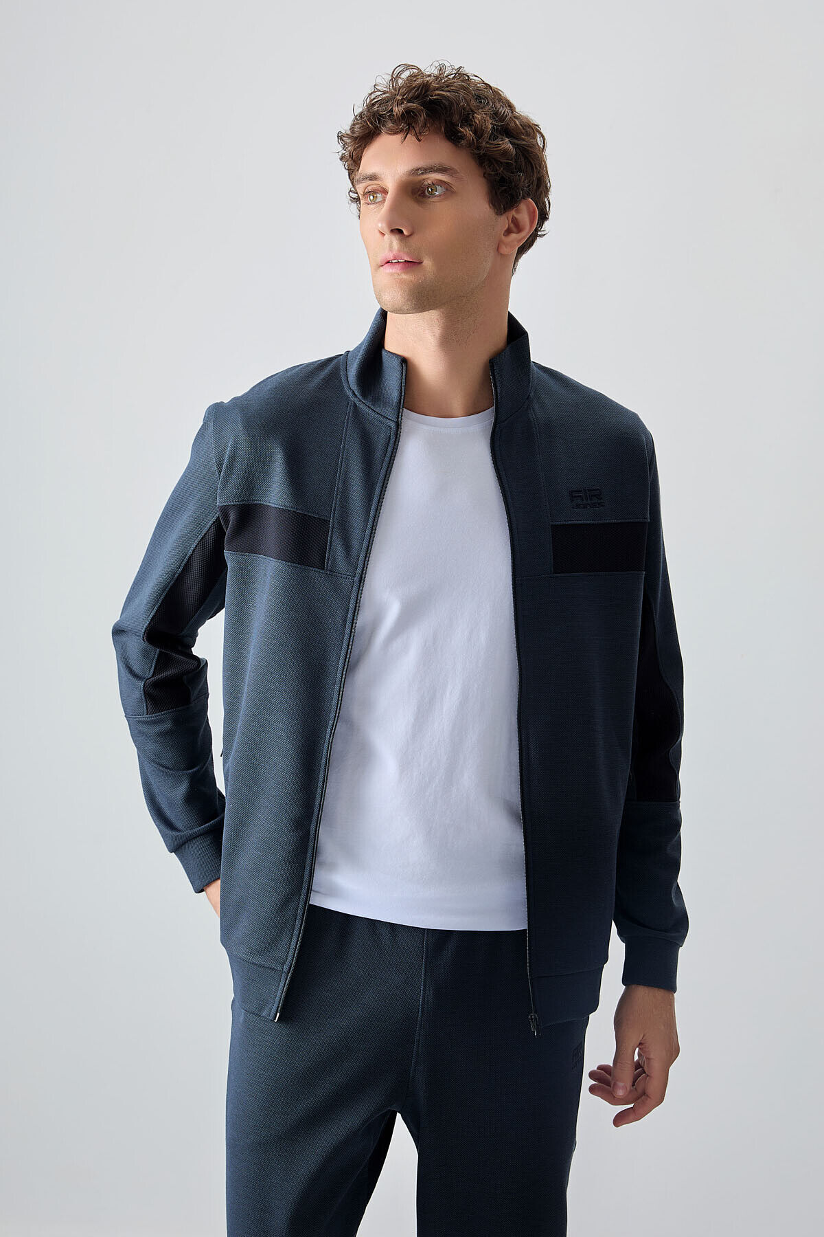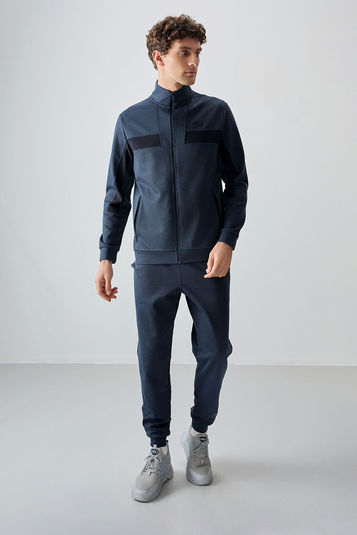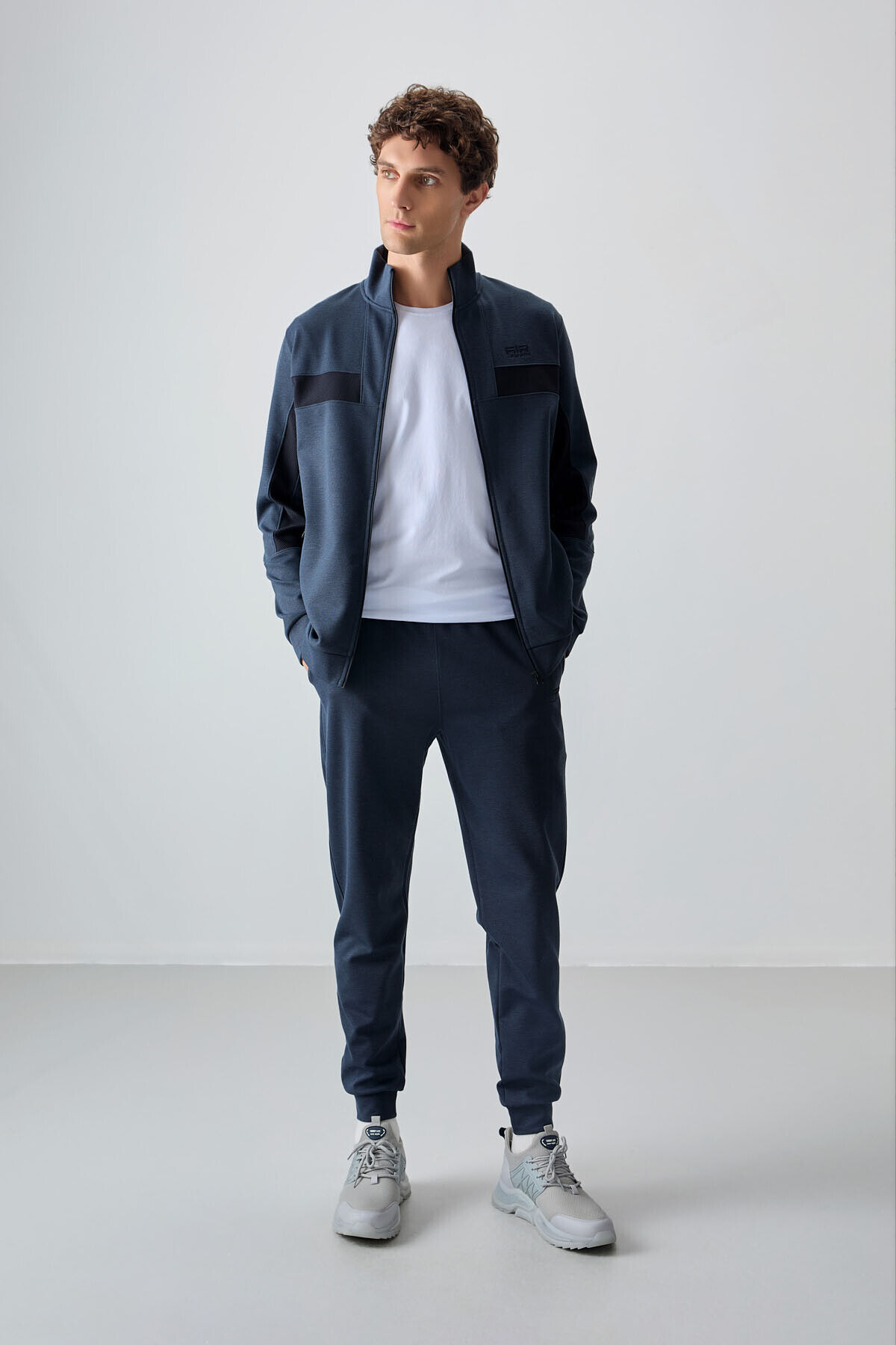 İndigo Yüzeyi Dokulu Standart Fit Nakışlı Erkek Eşofman Takım - 85248