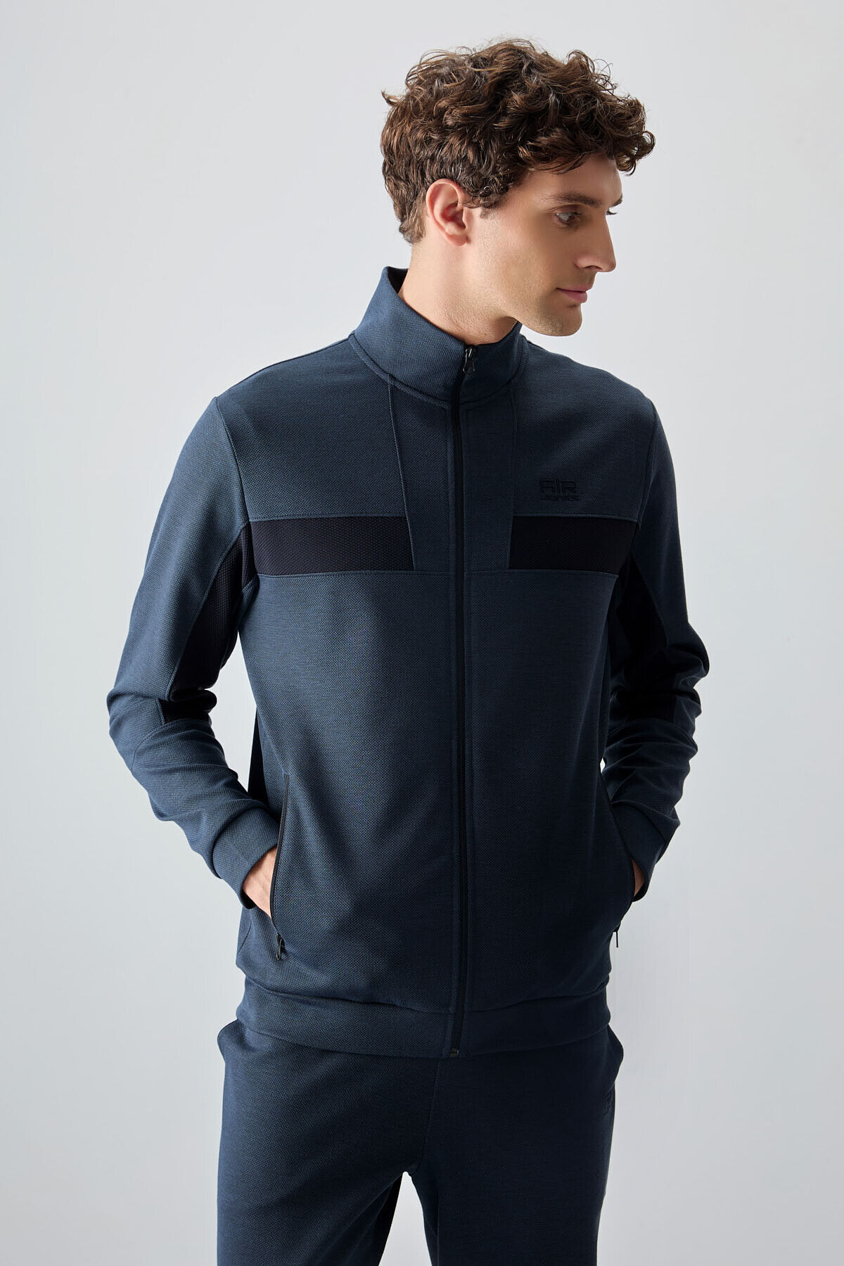 Air Jones İndigo Yüzeyi Dokulu Standart Fit Nakışlı Erkek Eşofman Takım - 85248