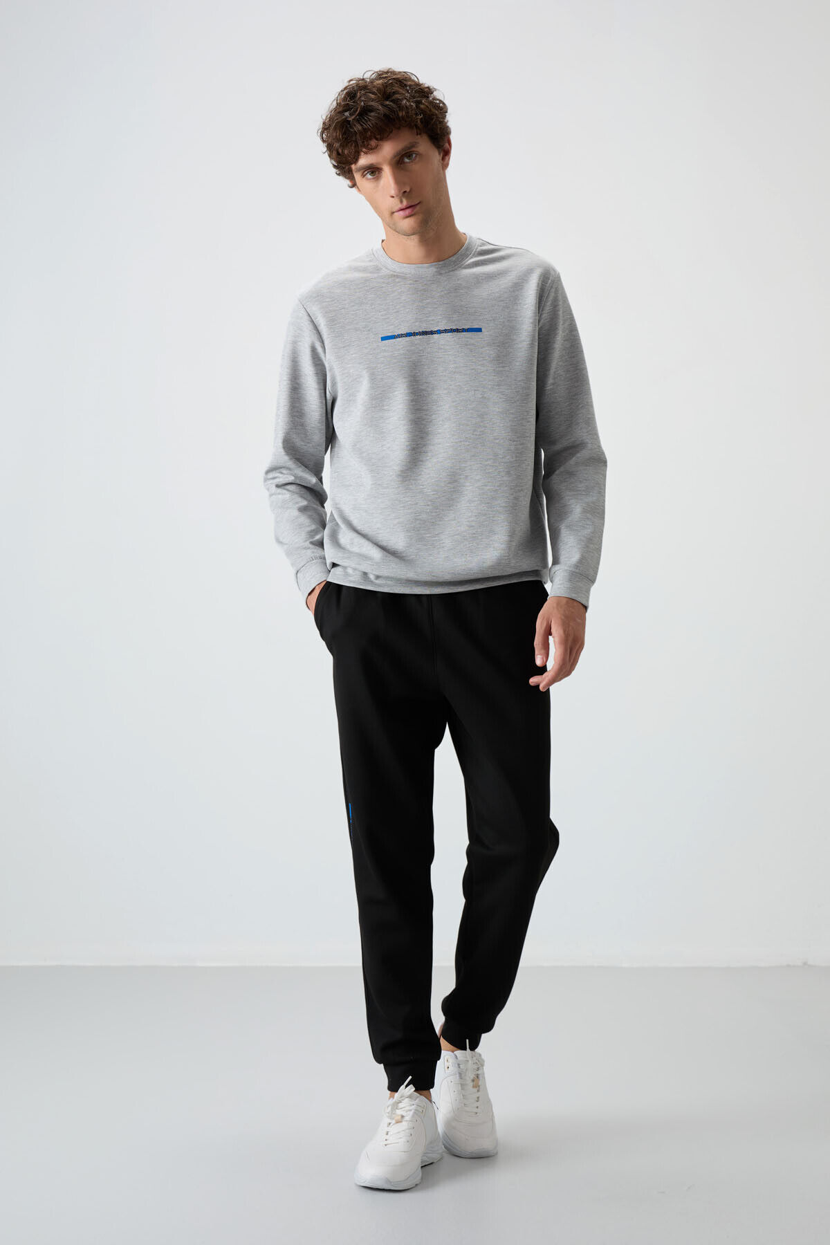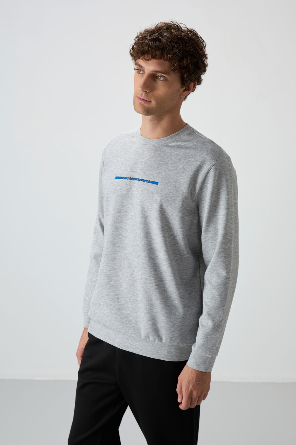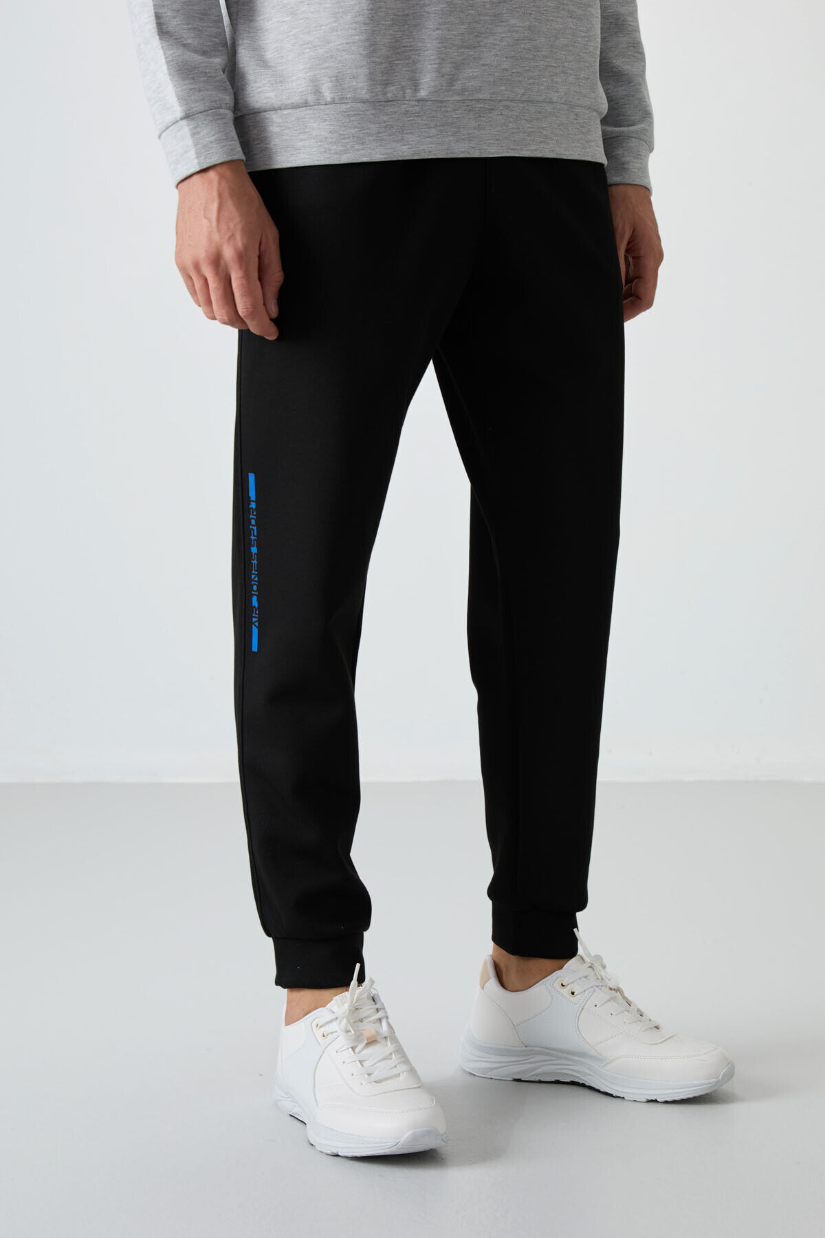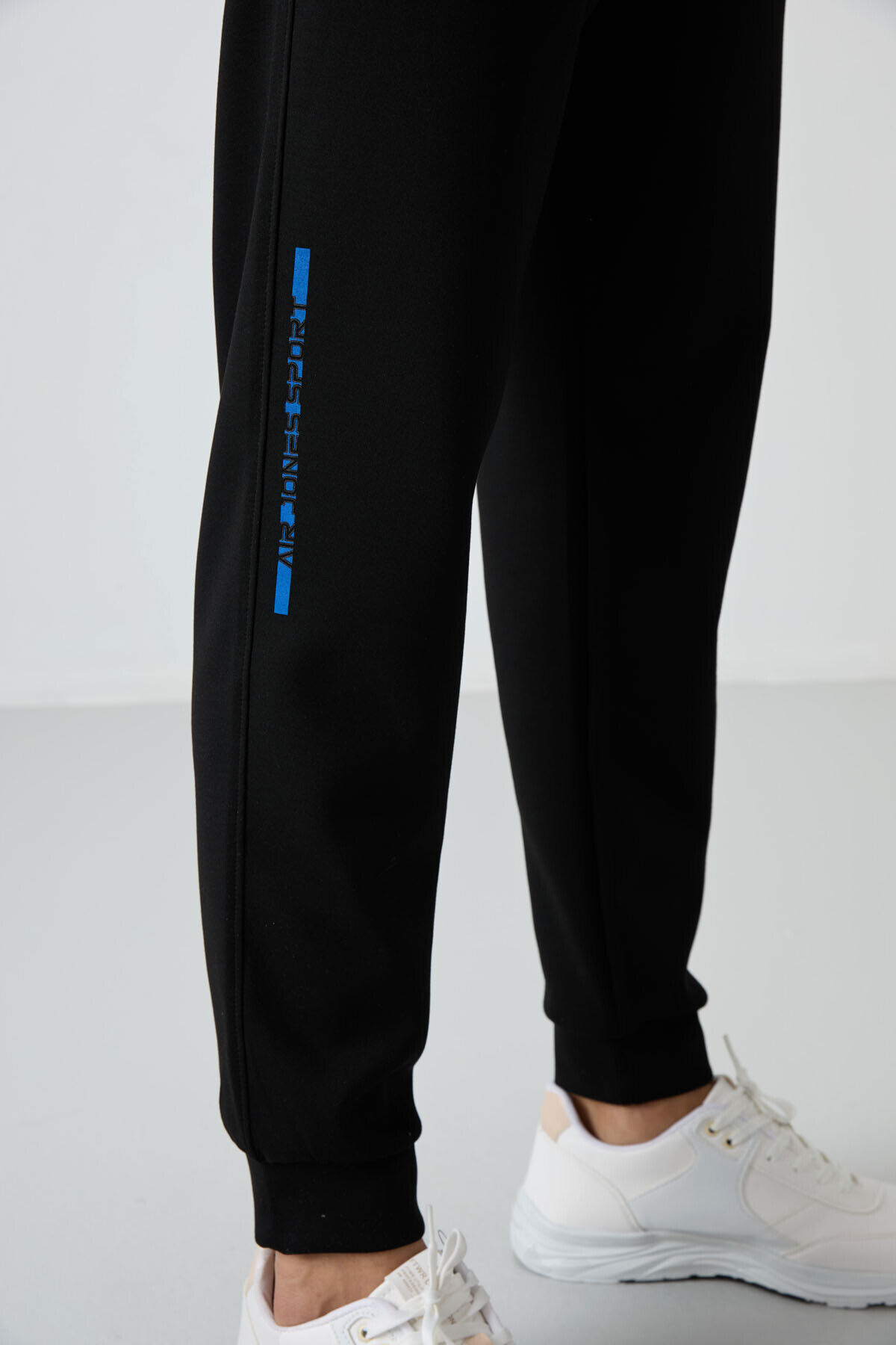Air Jones Kar Melanj - Siyah Pamuklu Kalın Yumuşak Dokulu Comfort Fit Baskılı Erkek Eşofman Takım - 85239