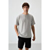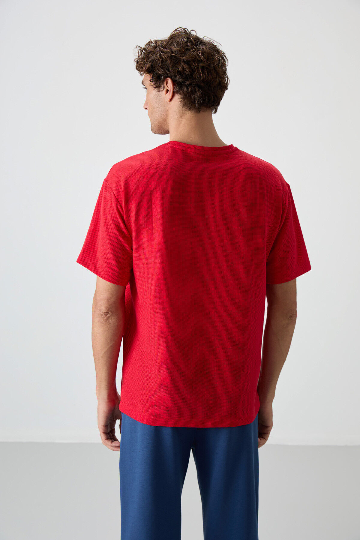 Air Jones Kırmızı Waffle İnterlok Yüzeyi Dokulu Oversize Fit Basic Erkek T-Shirt - 88379
