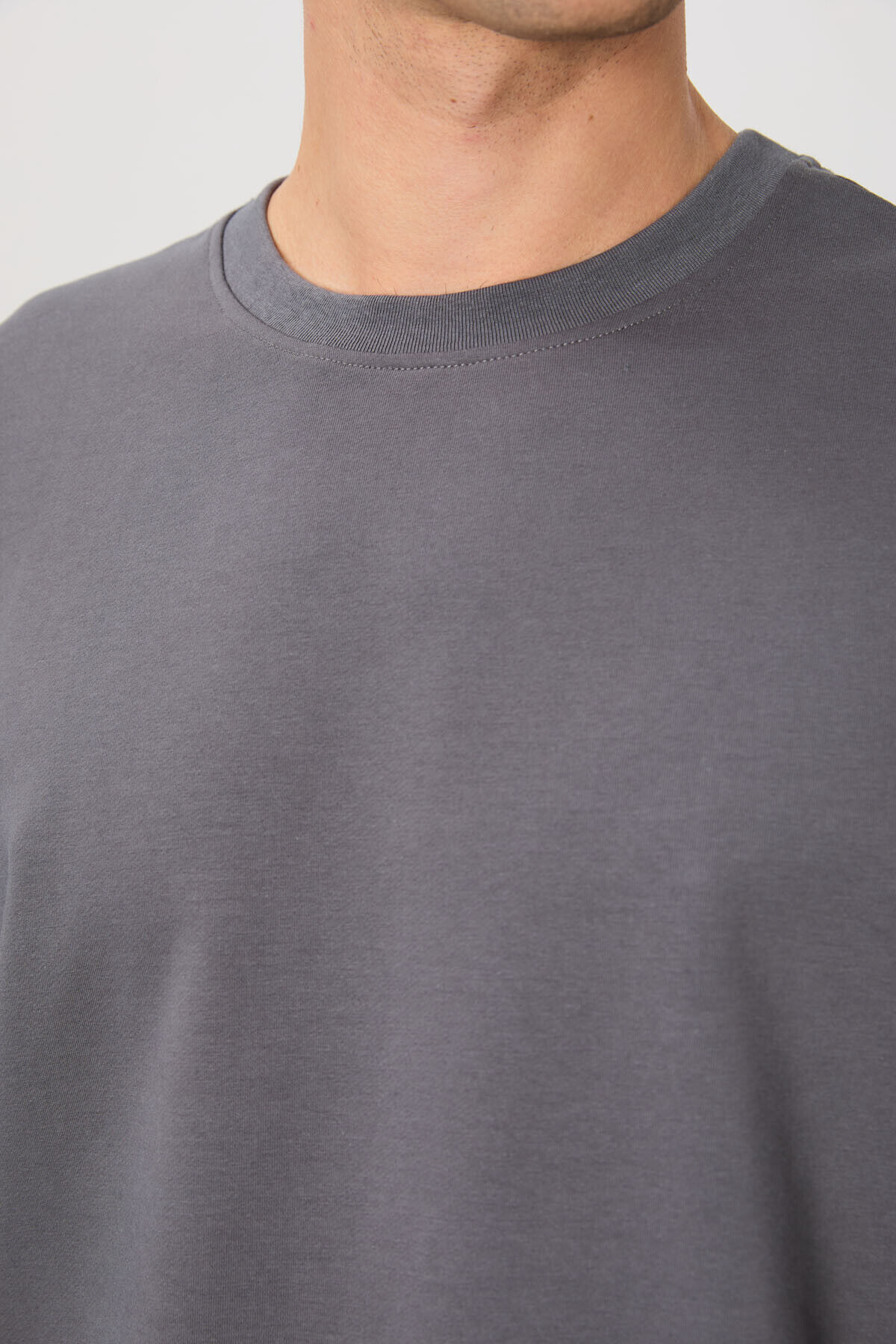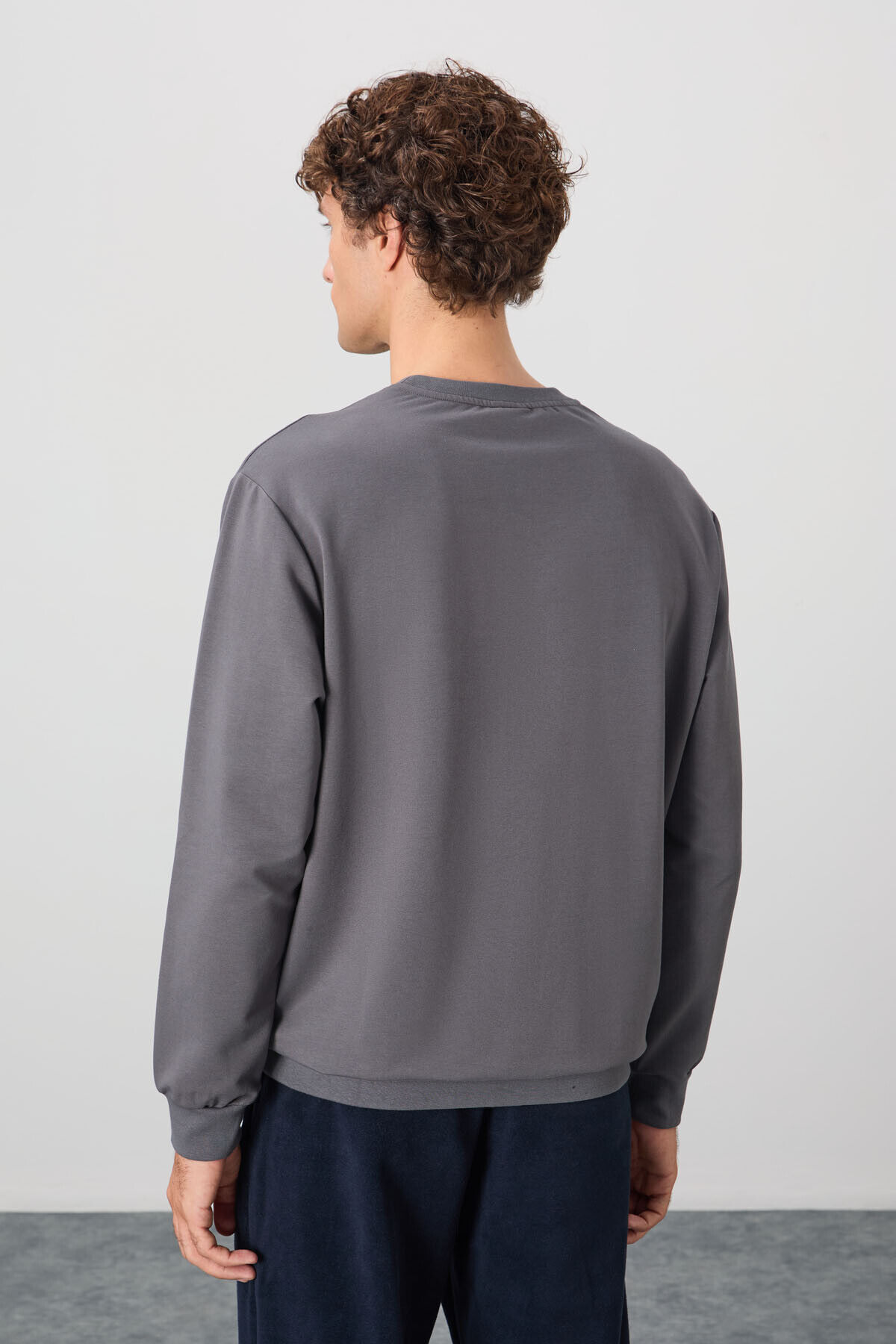 Koyu Gri Pamuk Yumuşak Dokulu Standart Fit Basic Erkek Sweatshirt - 88363