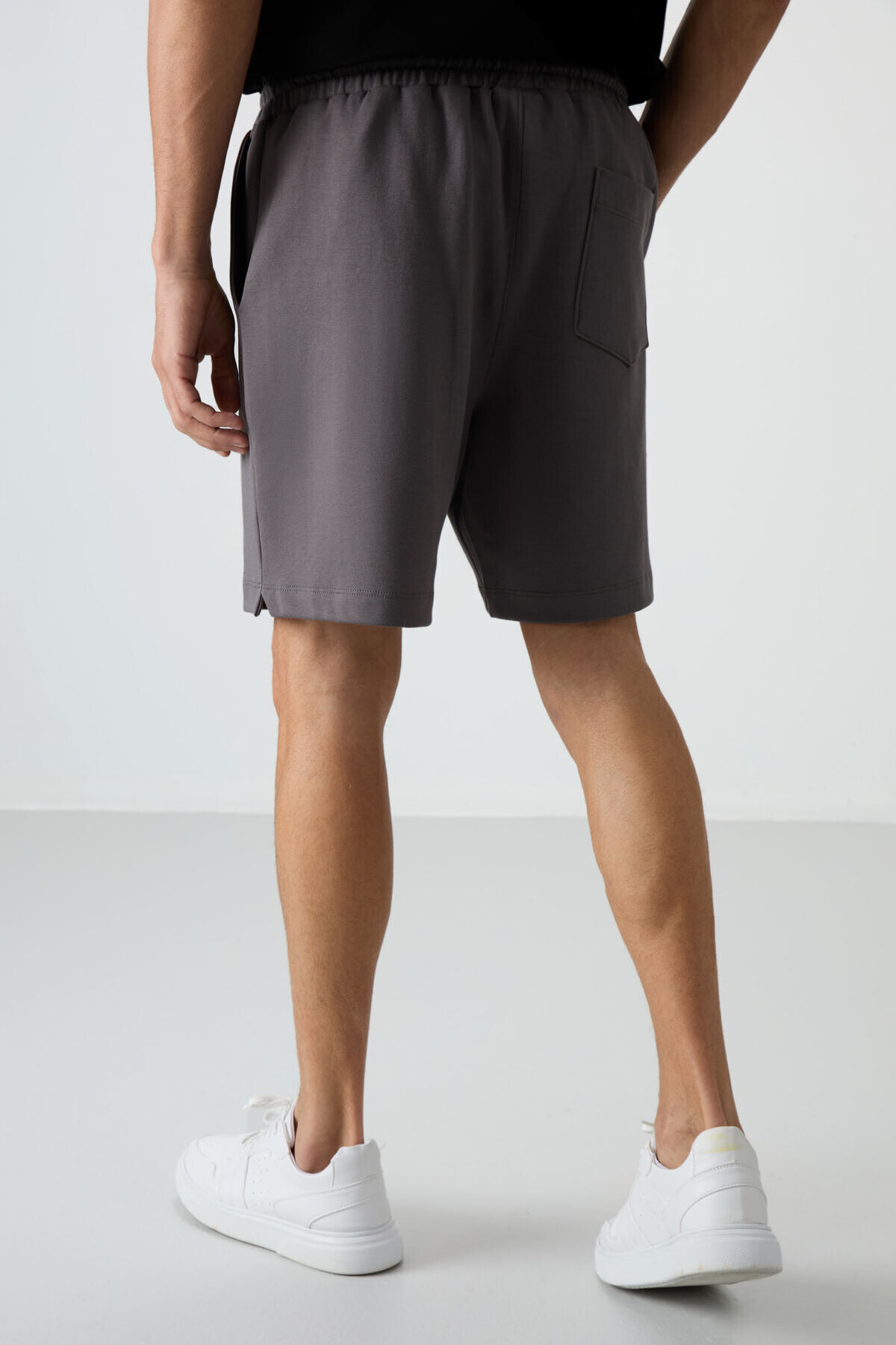 Koyu Gri Pamuklu Kalın Yumuşak Dokulu Comfort Fit Basic Erkek Şort - 81274
