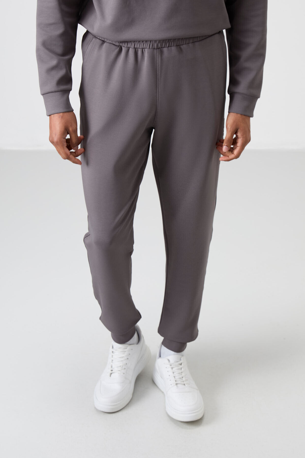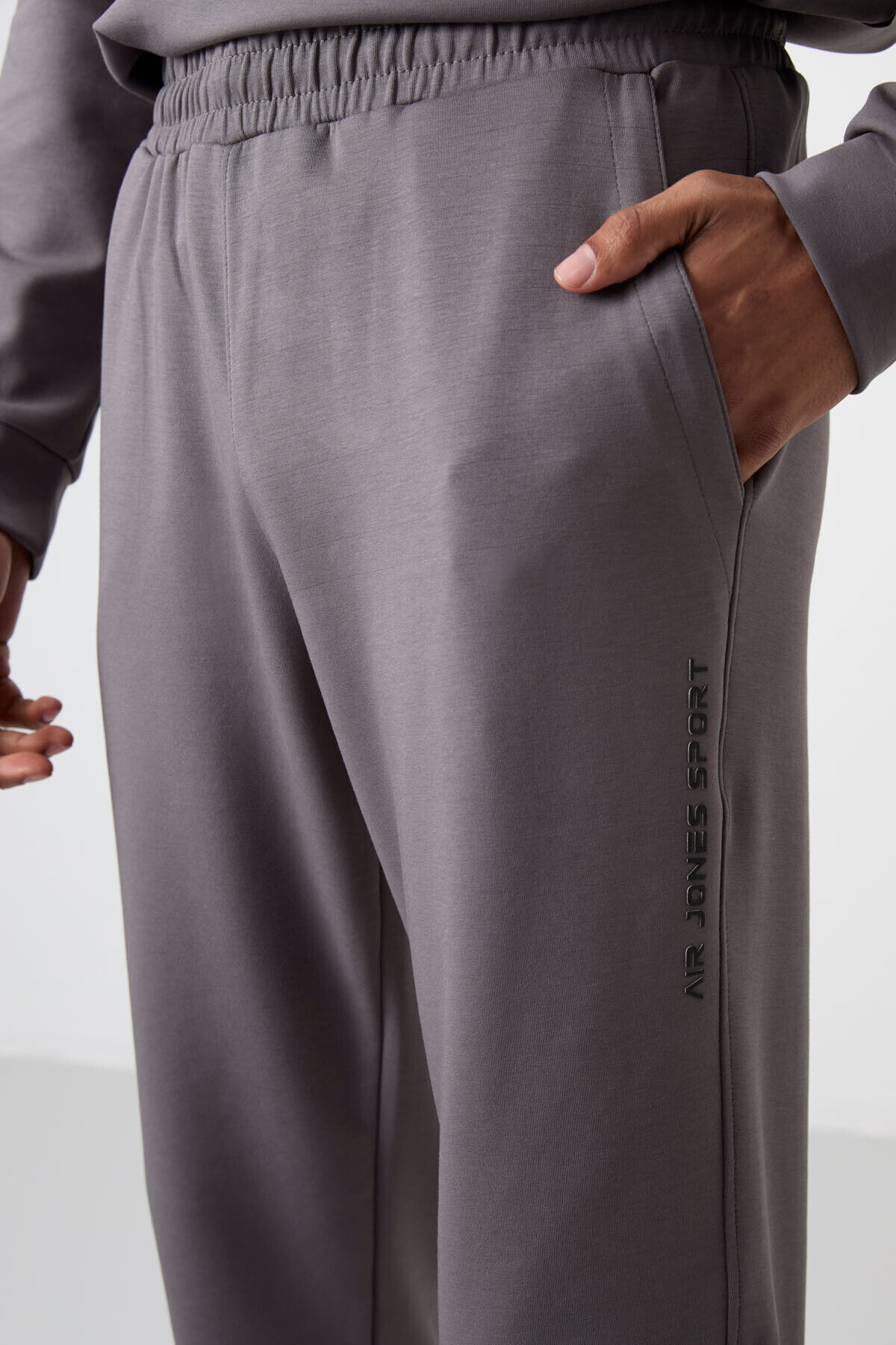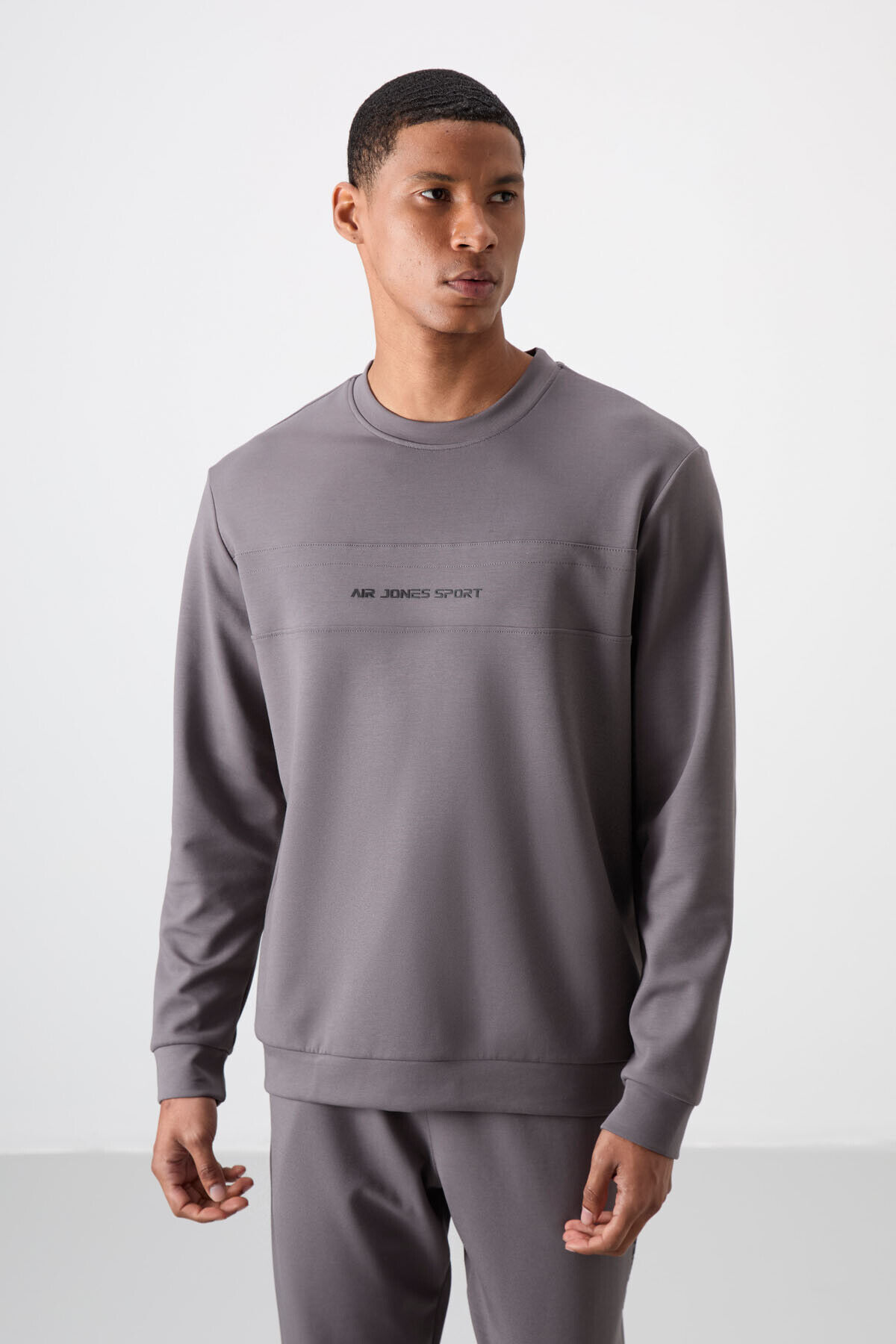 Air Jones Koyu Gri Pamuklu Kalın Yumuşak Dokulu Comfort Fit Baskılı Erkek Eşofman Takım - 85253
