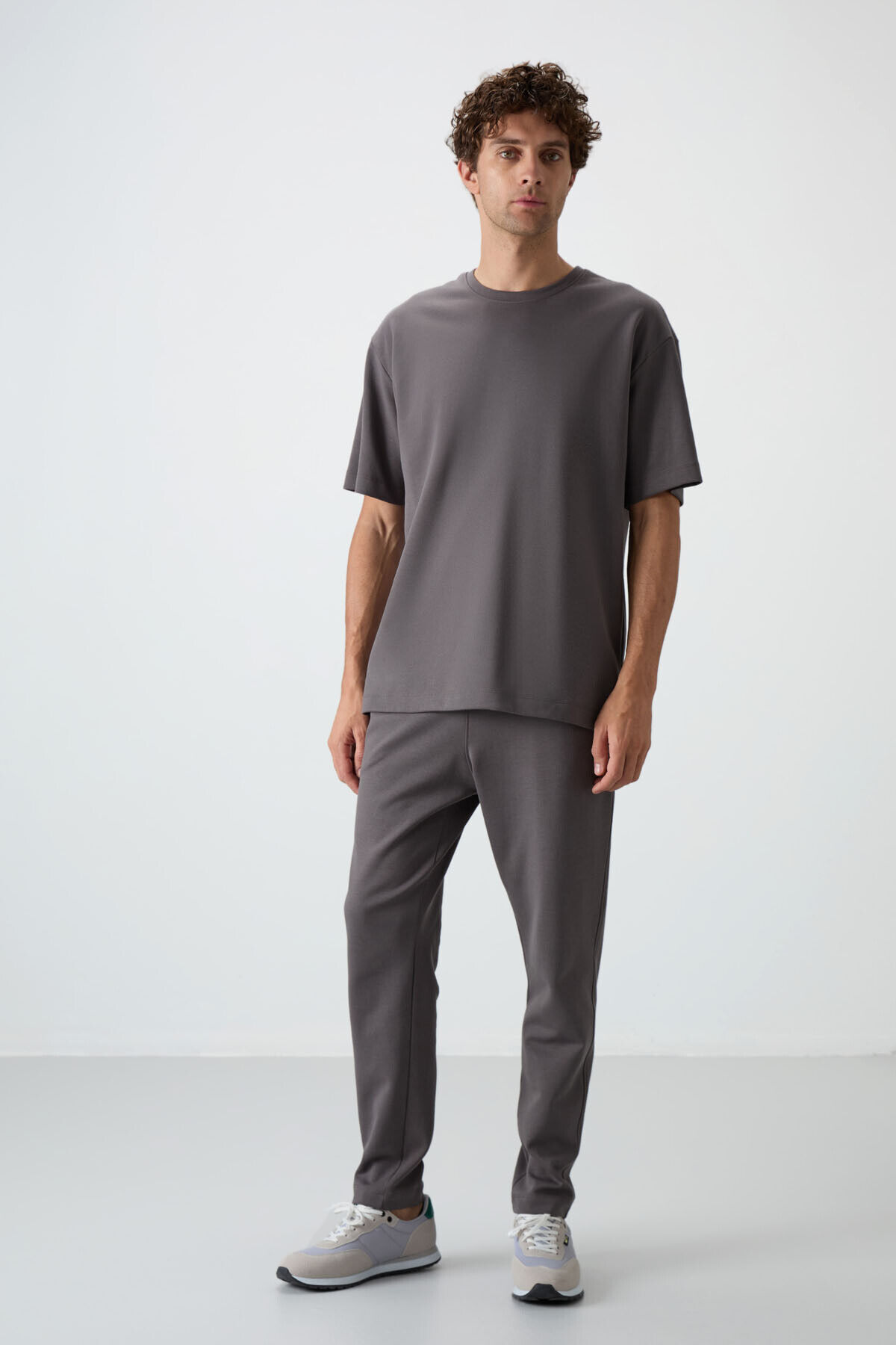 Koyu Gri Pamuklu Kalın Yumuşak Dokulu Oversize Fit Basic Erkek Eşofman Takım - 85251