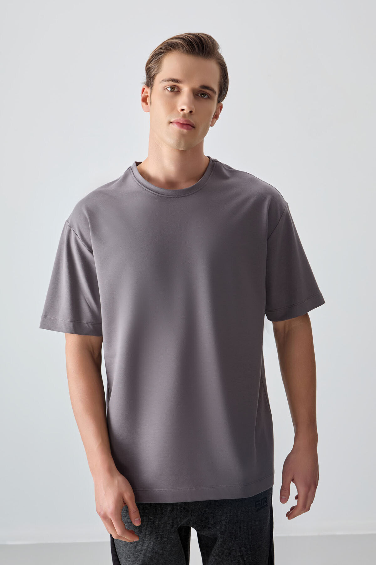 Air Jones Koyu Gri Pamuklu Kalın Yumuşak Dokulu Oversize Fit Basic Erkek T-Shirt - 88377