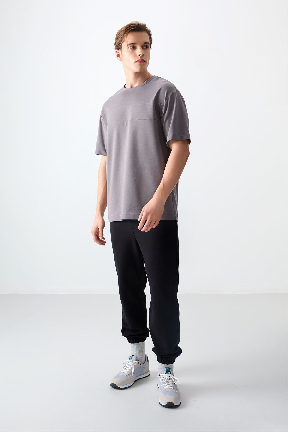 Air Jones Koyu Gri Pamuklu Kalın Yumuşak Dokulu Oversize Fit Basic Erkek T-Shirt - 88378