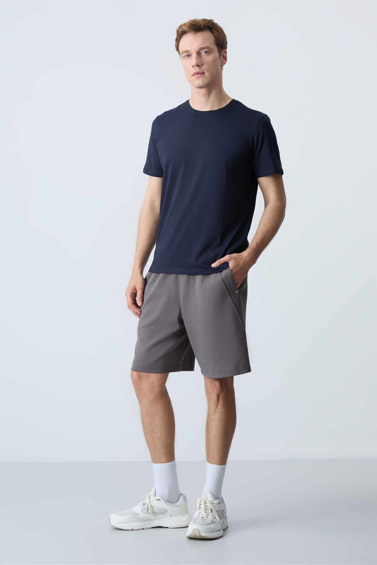 Air Jones Koyu gri Pamuklu Kalın Yumuşak Dokulu Standart Fit Basic Erkek Şort - 81278