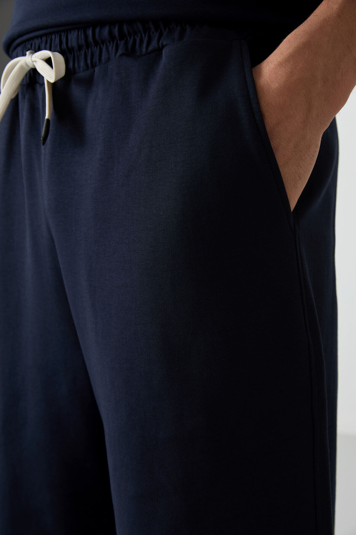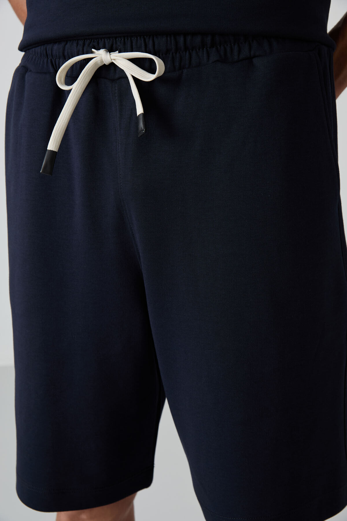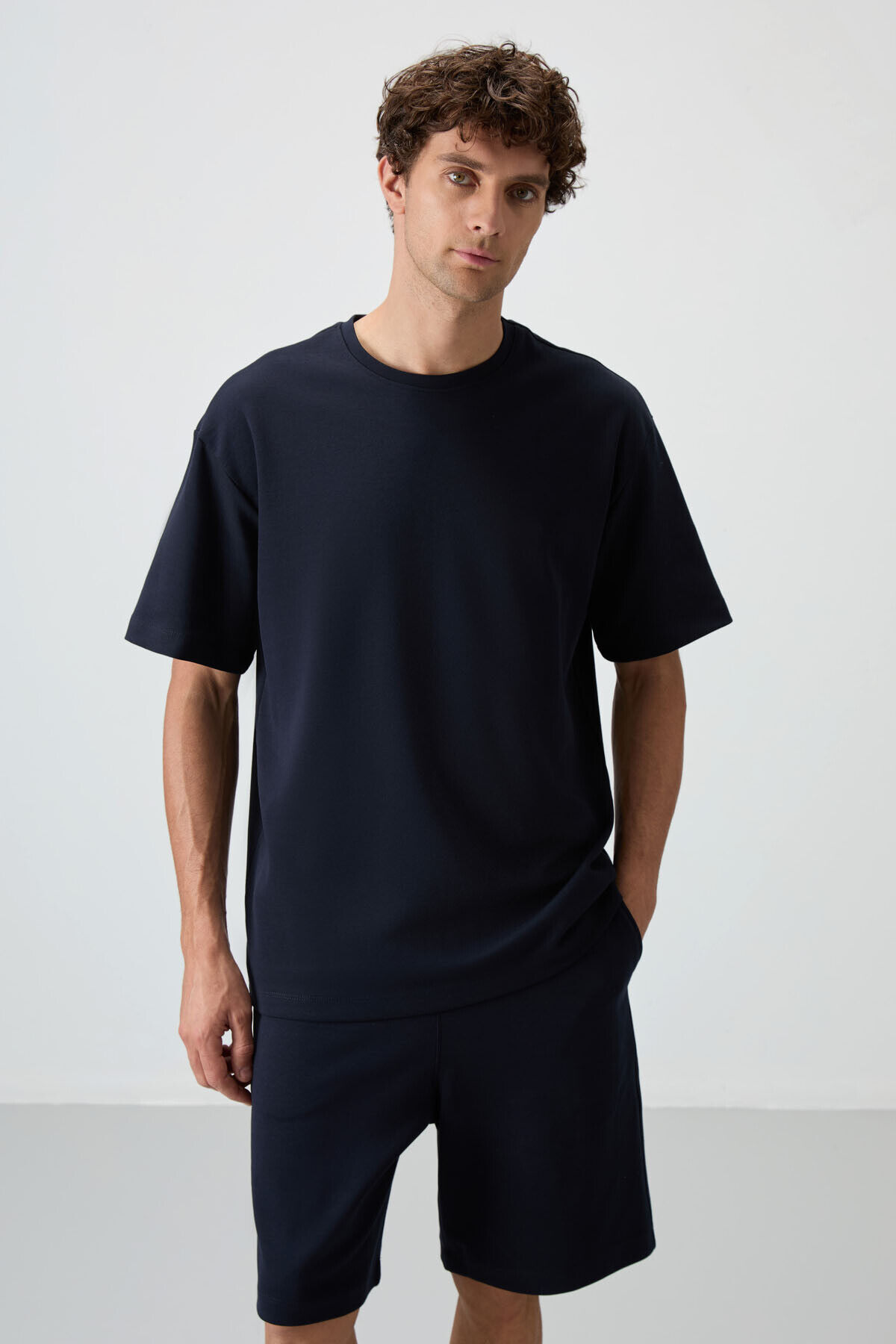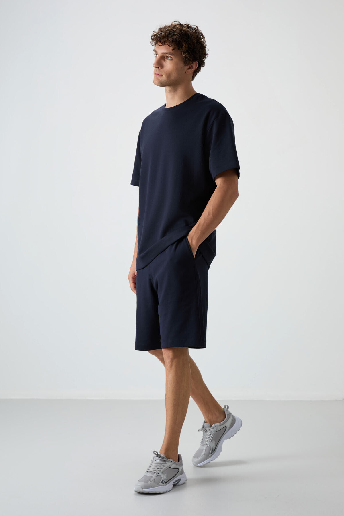 Air Jones Lacivert Pamuklu Kalın Yumuşak Dokulu Oversize Fit Basic Erkek Şort Takım - 85249